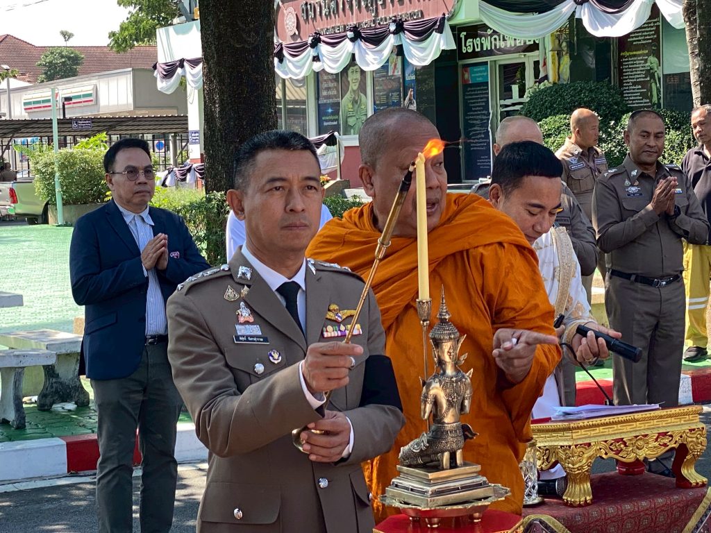 โดยมี พ.ต.อ.พิสุทธิ์ จันทร์สุวรรณ ผกก สภ บางแก้ว ท่านใหม่ เป็นประธานจุดเทียนชัยมงคล พร้อมด้วย พ.ต.อ.วัชระ เทพเสน ผกก.สภ.บางปู รอง ผกก. สภ.บางแก้ว ในสายงานต่างๆ เช่น งานป้องกันปราบปราม งานสอบสวน งานสืบสวน งานจราจร ข้าราชการตำรวจ สภ.บางแก้ว ตลอดจน กก.ตร.สภ.บางแก้ว กำนัน ผู้ใหญ่บ้าน ต.บางแก้ว เข้าร่วมพิธีบวงสรวงเพื่อความเป็นสิริมงคล โดยมีพราหมณ์ ณฐกร โทนะศรี จากหอบรมครูพระพิราพสถิตย์ เป็นเจ้าพิธีบวงสรวง