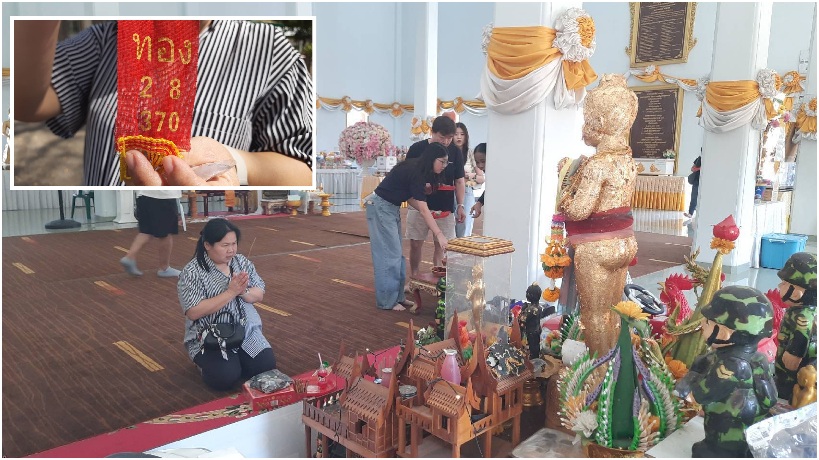 ส่วนทางด้านนางสาวศุภาณี (ขอสงวนนามสกุล) จากย่านคลอง 11 นำชุดไทยสีชมพู พร้อมเครื่องเซ่นไหว้มา แก้บนต่อหน้าศาล ‘แม่ตะเคียน’หลังได้โชคก้อนโตในงวดที่ผ่านมา นางศุภาณีกล่าวว่าวันนี้ตนตั้งใจมาแก้บนถวายชุดไทยให้กับแม่ตะเคียน เนื่องจากเธอได้โชคใหญ่ถูกลอตเตอรี่รางวัลเลขท้าย 3 ตัวในงวดที่ผ่านมา ซึ่งตนได้ติดตามเพจข่าว และตนได้เห็นแม่ตะเคียนในข่าวให้โชคมาหลายคนตามที่รายงานไป ตนจึงได้บนบานขอพรกับแม่ตะเคียนไว้ว่าหากตนได้รับโชคแล้ว ตนจะนำชุดไทยมาถวายแก้บนแม่ตะเคียนและโอนเงินร่วมทำบุญสร้างหลวงปู่ทวด ที่วัดบึงบาฯ หลังจากตนเองโชคดีถูกรางวัลได้รับโชคก้อนใหญ่มาตามที่เคยได้ตั้งใจไว้ตอนบนบานแล้ววันนี้ตนจึงเดินทางมาแก้บนดังกล่าว และก่อนกลับได้จุดธูปเสี่ยงทายได้เลข 845 นำกลับไปลุ้นโชคอีกครั้ง