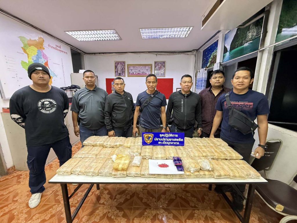 มุกดาหาร สืบ สภ เมืองมุกดาหาร สนธิกำลังยึดยาบ้า 4 แสนเม็ดซุกซ่อนในรถยนต์