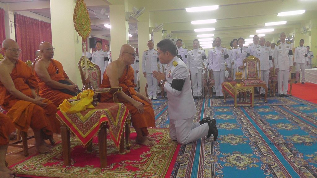 จบแล้วผู้ว่าราชการจังหวัดกระบี่ จุดธูปเทียนหน้ากระบะมุก พระสงฆ์ จำนวน 4 รูป สวดธรรมคาถา เสร็จแล้วผู้ว่าราชการจังหวัดกระบี่ ถวายเครื่องไทยธรรมกัณฑ์เทศ พระสงฆ์แสดงพระธรรมเทศนา ผู้ว่าราชการจังหวัดกระบี่ ถวายเครื่องไทยธรรมพระสงฆ์สวดธรรมคาถา จำนวน 4 รูป เจ้าหน้าที่ลาดผ้ารองโยงและลาดพระภูษาโยง ผู้ว่าราชการจังหวัดกระบี่ ทอดผ้าไตรบังสุกุล พระสงฆ์ดับปกรณ์ จำนวนวน 5 รูป ผู้ว่าราชการจังหวัดกระบี่ กรวดน้ำรับพร ผู้ว่าราชการจังหวัดกระบี่ กราบนมัสการพระรัตนตรัยหน้าโต๊ะหมู่บูชา และกราบถวายสักการะหน้าพระฉายาลักษณ์ ผู้ร่วมในพิธีถวายความเคารพ ผู้ว่าราชการจังหวัดกระบี่ กราบลาประธานสงฆ์ เป็นอันเสร็จสิ้นพิธีบำเพ็ญกุศลปัณรสมวาร ครบ 50 วัน ถวายพระราชกุศลเบื้องหน้าพระฉายาลักษณ์ สมเด็จพระนางเจ้าสิริกิติ์ พระบรมราชินีนาถ พระบรมราชชนนีพันปีหลวง