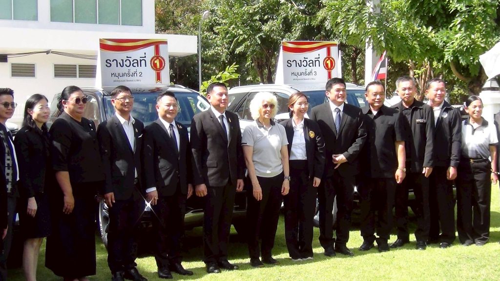 ได้แก่ รถอเนกประสงค์ โตโยต้า ฟอร์จูนเนอร์ ลีดเดอร์ G เกียร์อัตโนมัติ ขับเคลื่อน 2 ล้อ สีขาวมุก จำนวน 1 คัน รถอเนกประสงค์ โตโยต้า ฟอร์จูนเนอร์ ลีดเดอร์ G เกียร์อัตโนมัติ ขับเคลื่อน 2 ล้อ สีดำ จำนวน 1 คัน รถอเนกประสงค์ โตโยต้า ฟอร์จูนเนอร์ ลีดเดอร์ G เกียร์อัตโนมัติขับเคลื่อน 2 ล้อ สีเงิน จำนวน 1 คัน รางวัลที่ 2 ทองคำรูปพรรณ หนัก 1 สลึง จำนวน 10 เส้น รางวัล ที่ 3 ตู้เย็น แบบ 2 ประตู ขนาด 12.3 คิว ยี่ห้อ ซัมซุง จำนวน 10 หลัง รางวัลเลขท้าย 3 ตัว พัดลม ขนาด 16 นิ้ว ยี่ห้อฮาตาริ จำนวน 100 ตัว
