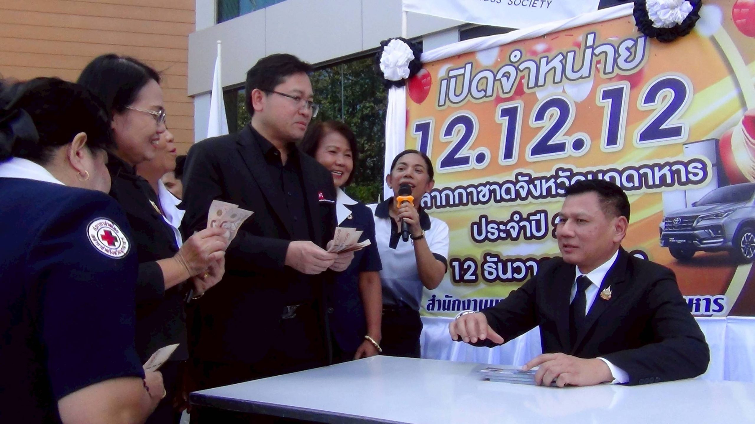 มุกดาหาร พ่อเมืองมุกดาหาร เปิดจำหน่ายสลากกาชาดให้ชาวมุกดาหารประจำปี 2569