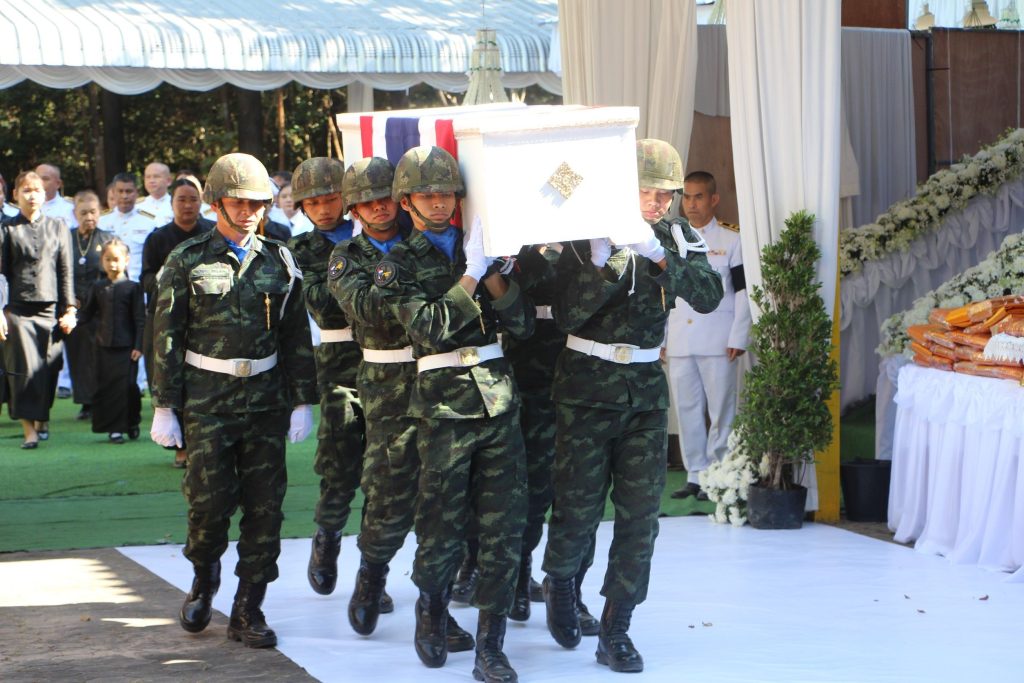 เสร็จพิธีพระราชทานเพลิงศพฯ กองทัพบก ได้ทำพีธี – พิธี ม้วนธงชาติที่คลุมศพ มอบคืนให้กับครอบครัวรักษาไว้เป็นที่ระลึกสืบต่อประวัติแห่งเกียรติยศทหารหาญ ผู้พิทักษ์แผ่นดิน ธงชาติ -พิธี มอบโล่ห์ ยุทธการฯ -พิธีมอบใบประกาศ เกียรติคุณฯ –พิธีมอบเงินบำรุงขวัญ –พิธีมอบเงินสินไหมฯ – ให้กับครอบครัว