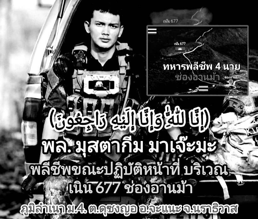 สำหรับร่างของ พลอาสา มุสตากีม มาเจ๊ะมะ อายุ 21 ปี จะถึงสนามบินนราธิวาส ในเวลา 13.15 น.วันนี้ (14 ธ.ค.68) และเจ้าหน้าที่ทหาร ร.151 ค่ายกัลยาณิวัฒนา จะนำไปที่สุสานสะบือรัง บ้านสุแฆ ต.ดุซงญอ อ.จะแนะ จ.นราธิวาส ซึ่งเป็นภูมิลำเนาเกิด