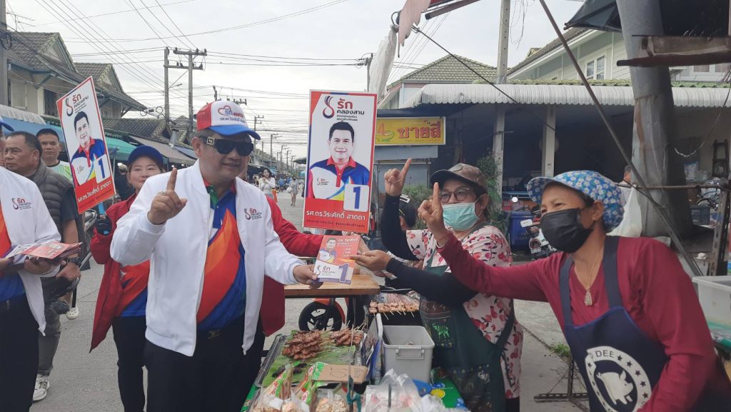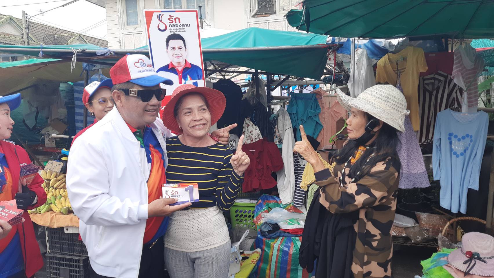 วันที่ 14 ธันวาคม 68 ผู้สื่อข่าวรายงานว่า รศ.ดร.วิระศักดิ์ ฮาดดา ผู้สมัคร ชิงตำแหน่ง นายก อบต.คลองสาม หมายเลข 1 ทีมรักคลองสาม พร้อมทีมงานผู้ช่วยหาเสียงออกเดินเท้าพบปะประชาชนภายในตลาดสดไทยสมบูรณ์ 3 และ ตลาดเช้าภายในหมู่บ้านพฤกษาบี ม.4 ต.คลองสาม อ.คลองหลวง จ.ปทุมธานี โดยแจกใบแนะนำตัวและใบนโยบายในการหาเสียงแจกให้กับประชาชนที่มาเดินจับจ่ายซื้อของในตลาดสดในช่วงเช้า