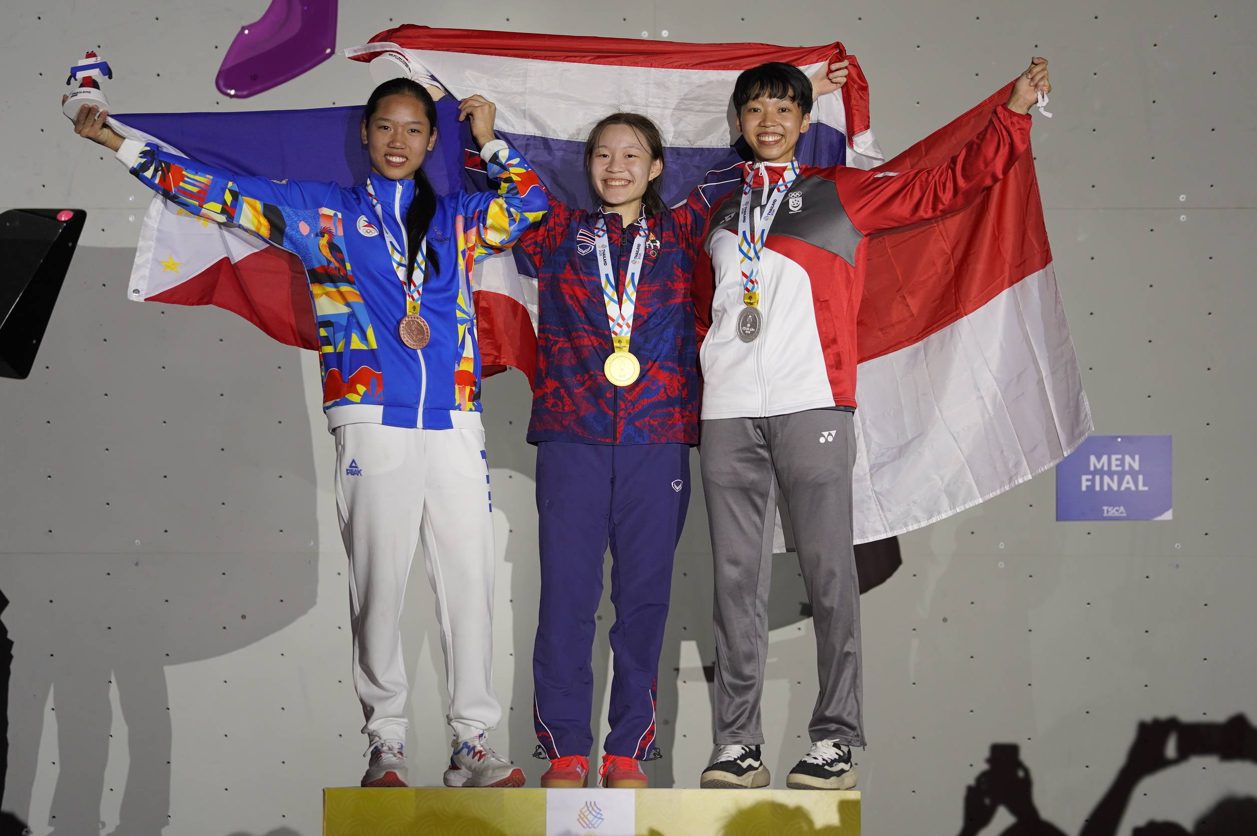วันสุดท้ายของการแข่งขันกีฬาปีนหน้าผา ในซีเกมส์ครั้งที่ 33 ที่ศูนย์ปีนหน้าผา การกีฬาแห่งประเทศไทย เมื่อวันที่ 14 ธ.ค. 68 มีชิงชัย 2 เหรียญทอง ในประเภทโบลเดอร์ริ่ง โดยรอบชิงชนะเลิศ นักกีฬาต้องปีน 4 เส้นทาง เส้นทางละ 4 นาที