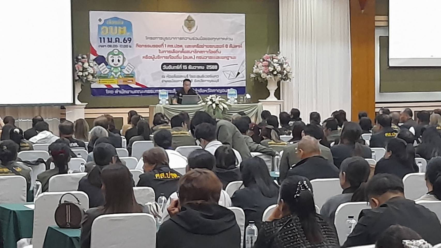 ณ โรงแรมริเวอร์แคว ตำบลบ้านเหนือ อำเภอเมือง จังหวัดกาญจนบุรีจากนั้น นายธนกฤต สนองสิทธิ์ พนักงานการเลือกตั้งชำนาญการ ได้เป็นตัวแทนกล่าวรายงานเกี่ยวกับวัตถุประสงค์ในการจัดทำโครงการฯ และ การจัดกิจกรรมวิชาต่างๆที่ทาง กกต.กาญจน์ร่วมกับภาคส่วนต่างๆได้จัดขึ้นมาในวันนี้ว่า การจัดโครงการดังกล่าวเป็นความร่วมมือของทุกภาคส่วนได้ดำเนินการร่วมกันจัดขึ้นมาเพื่อให้ความรู้เกี่ยวกับเรื่องของการเลือกตั้งสมาชิกสภาท้องถิ่นและผู้บริหารท้องถิ่น (อบต.)ที่จะมีการเลือกตั้งขึ้นในวันอาทิตย์ที่ 11 มกราคม 2569 ที่จะถึงนี้ ภายในโครงการดังกล่าวยังได้จัดให้มีการทำกิจกรรมให้ความรู้ 5 วิชากับผู้เข้าร่วมโครงการได้ศึกษาเรียนรู้เพื่อนำความรู้ที่ได้ในครั้งนี้นำไปใช้และปฎิบัติเพื่อทำการประชาสัมพันธ์ให้พี่น้องประชาชนชาวกาญจนบุรีได้ทราบเกี่ยวกับการเลือกตั้งสมาชิกสภาท้องถิ่นและผู้บริหารท้องถิ่นให้ประธานและผู้เข้าร่วมกิจกรรมของ ศส.ปชต.และ เครือข่ายได้ทราบ ต่อจากนั้น ร้อยตำรวจเอกพงศ์บัณฑิต ปิ่นสุวรรณ ผู้อำนวยการสำนักงานคณะกรรมการการเลือกตั้งประจำจังหวัดกาญจนบุรี ประธานในพิธีได้กล่าวเปิดโครงการดังกล่าวพร้อมกับร่วมถ่ายภาพหมู่เป็นที่ระลึก