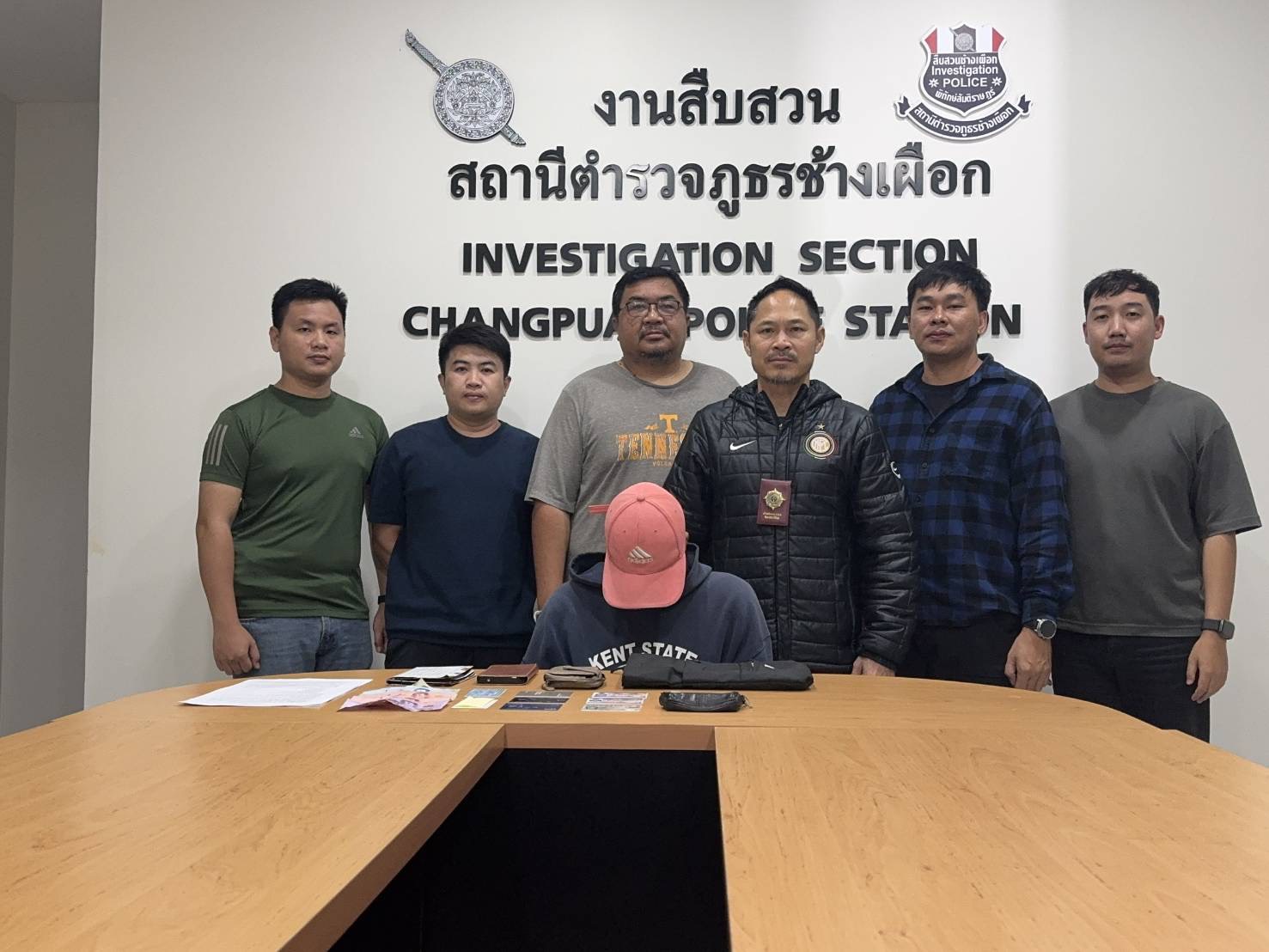 หลังรับแจ้งเหตุ เจ้าหน้าที่ตำรวจชุดสืบสวน สภ.ช้างเผือก ได้เร่งลงพื้นที่ ตรวจสอบกล้องวงจรปิด และรวบรวมพยานหลักฐานอย่างต่อเนื่อง จนสามารถติดตามจับกุมผู้ต้องหา คือ นายพนัส (สงวนนามสกุล) อายุ 21 ปี ได้ในพื้นที่ตำบลช้างเผือก ก่อนนำตัวส่งพนักงานสอบสวน สภ.ช้างเผือก เพื่อดำเนินคดีตามกฎหมาย.////////// นิวัตร ธาตุอินจันทร์ เชียงใหม่