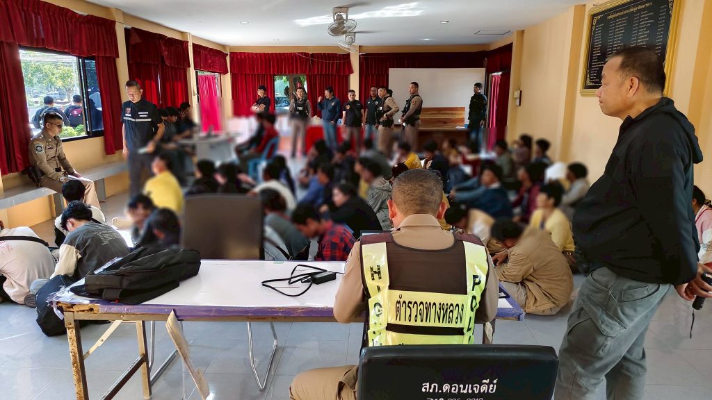จากการสืบสวนทราบว่าที่บริเวณป่าละเมาะริมถนนสาย 333 ด่านช้าง – อู่ทอง พบหลักฐานร่องรอยของกลุ่มคนเข้ามาใช้พื้นที่ มีเศษกล่องใส่อาหาร ขวดน้ำดื่ม ถุงขนมต่างๆ กระจายเกลื่อน เจ้าหน้าที่ตำรวจจึงมั่นใจว่าเป็นสถานที่ ที่ขบวนการลักลอบขนแรงงานต่าง นำพาต่างด้าวเข้ามาพักหลบซ่อน เพื่อรอเคลื่อนย้ายกระจายไปตามที่ต่างๆ จึงวางกำลังดักซุ่ม กระทั่งเช้ามืดของวันที่ 16 ธ.ค. 2568 ได้มีรถกระบะมีคอก 2 คันและรถกระบะสี่ประตู 1 คัน ขับเข้ามาจอด ซึ่งรถยนต์ทั้ง 3 คัน ไม่ติดแผ่นป้ายทะเบียนด้านหน้า ซึ่งผิดปกติของรถปกติทั่วไป เจ้าหน้าที่ตำรวจ จึงแสดงตัวเข้าตรวจสอบพบภายในรถกระบะ พบที่ท้ายรถมีแรงงานต่างด้าวทั้งชาย-หญิงและเด็ก กว่า 50 คน จึงควบคุมตัวทั้งหมดมาสอบสวนขยายผลต่อที่ สภ.ดอนเจดีย์
