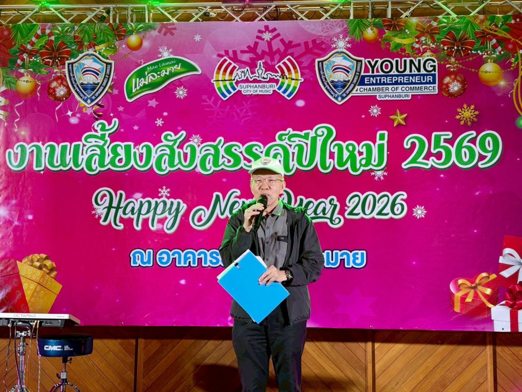 จากนั้น หอการค้าจังหวัดสุพรรณบุรี ได้จัดงานเลี้ยงสังสรรค์ปีใหม่ 2569 เพื่อเป็นการพบปะสังสรรค์ แลกเปลี่ยนประสบการณ์การบริหารงาน และเพื่อเป็นการผ่อนคลายหลังจากที่ทำงานกันมาทั้งปี โดยได้รับเกียรติจาก คณะผู้บริหารจังหวัดสุพรรณบุรี คณะผู้บริหารท้องถิ่น คณะผู้บริหารภาคเอกชน และสื่อมวลชน เข้าร่วมงานด้วยบรรยากาศที่อบอุ่นและชื่นมื่น
