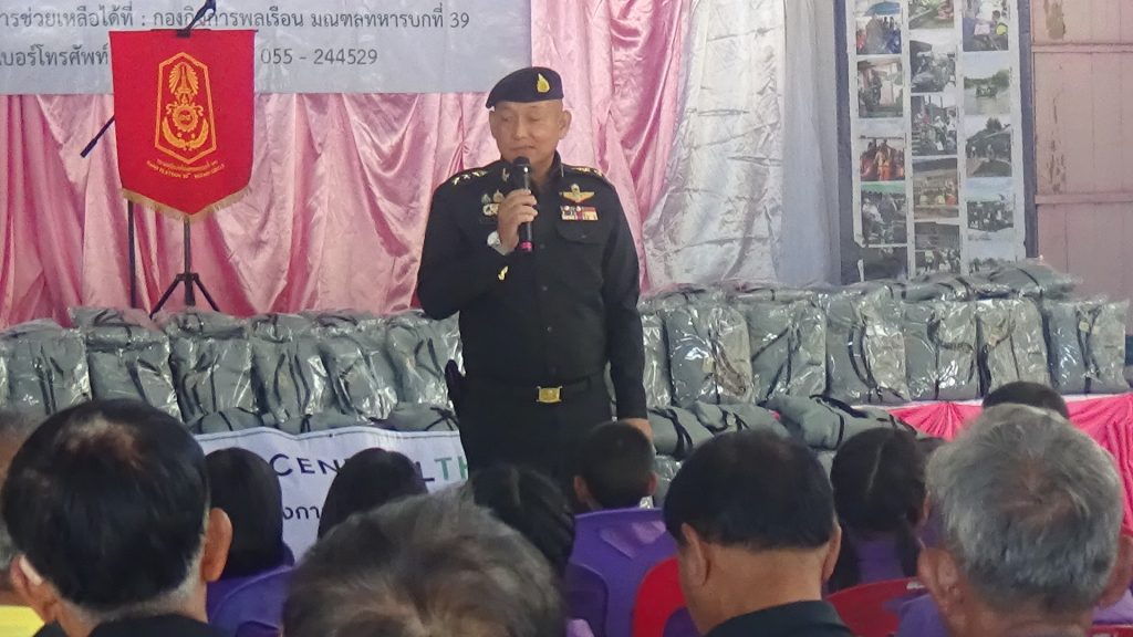 ที่โรงเรียนราชฎร์ดำริ ต.โคกสลุด อ.บางกระทุ่ม จ.พิษณุโลก พ.อ.วิชา อมระดิษฐ์ รอง.ผบ.มทบ.39 และ รอง.ผอ.รมน.จ.พิษณุโลก เป็นประธานในการมอบเสื้อกันหนาวนาโน ที่ทำมาจากใยพลาสสติก จำนวน 250 ตัว แก่นักเรียน แก่ประชาชน และ ทหารผ่านศึก โดย มทบ.39 ได้ร่วมกับ บริษัท เซ็นทรัล กรุ๊ป จำกัด นำมามอบให้ เพื่อช่วยเหลือประชาชน ตามโครงการ “ สานใจ สร้างไออุ่น ” ครั้งที่ 29