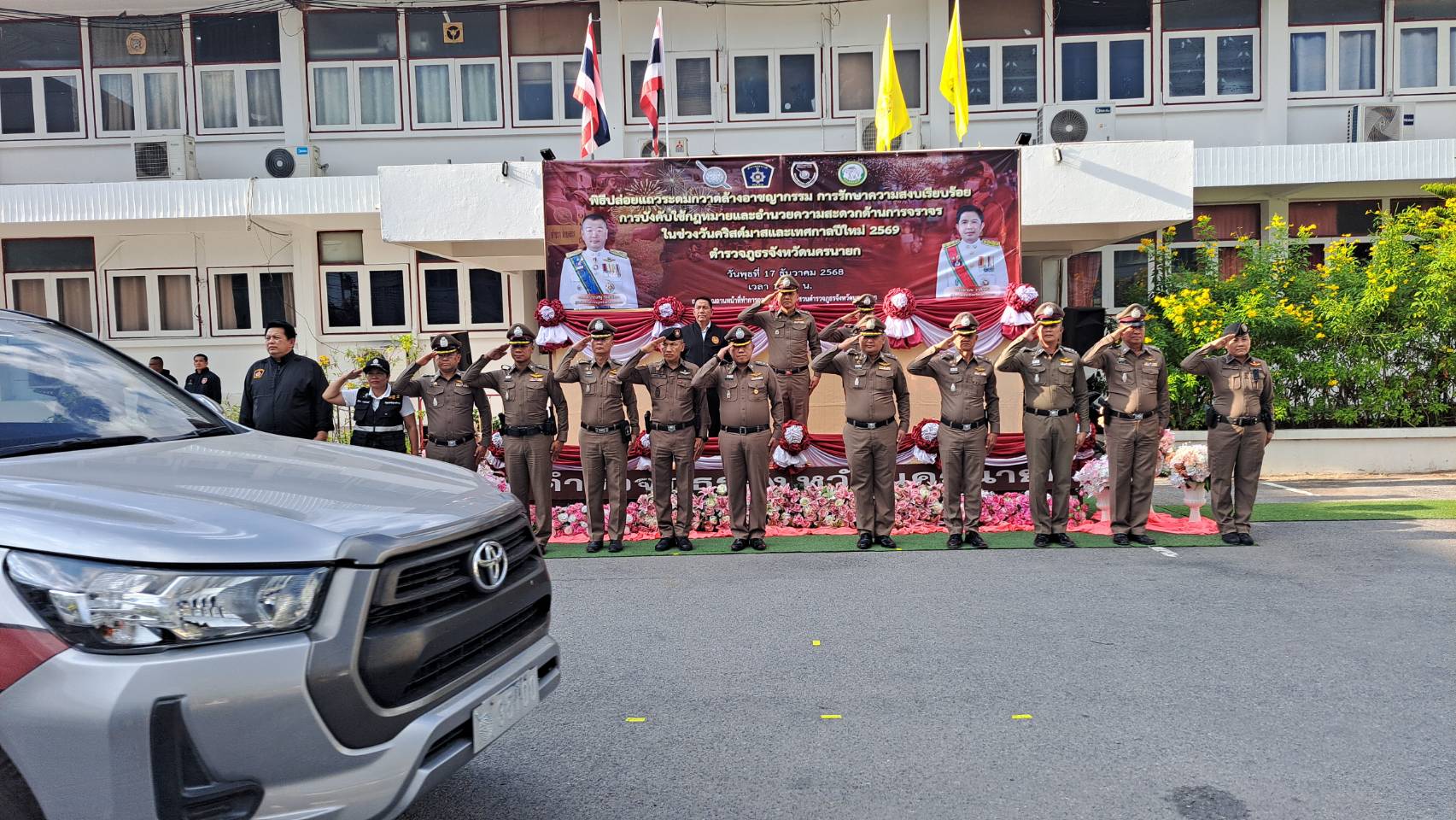 ที่บริเวณลานหน้ากองกำกับการสืบสวนตำรวจภูธรจังหวัดนครนายก พันตำรวจเอกสุทัศน์ พุ่มพันธ์ม่วง รองผู้บังคับการตำรวจภูธรจังหวัดนครนายก ได้เป็นประธานในพิธีปล่อยแถวระดมกวาดล้างอาชญากรรม การรักษาความสงบเรียบร้อยการบังคับ ใช้กฎหมาย และอำนวยความสะดวกด้านการจราจรในช่วงวันคริสต์มาสและเทศกาลปีใหม่ 2568