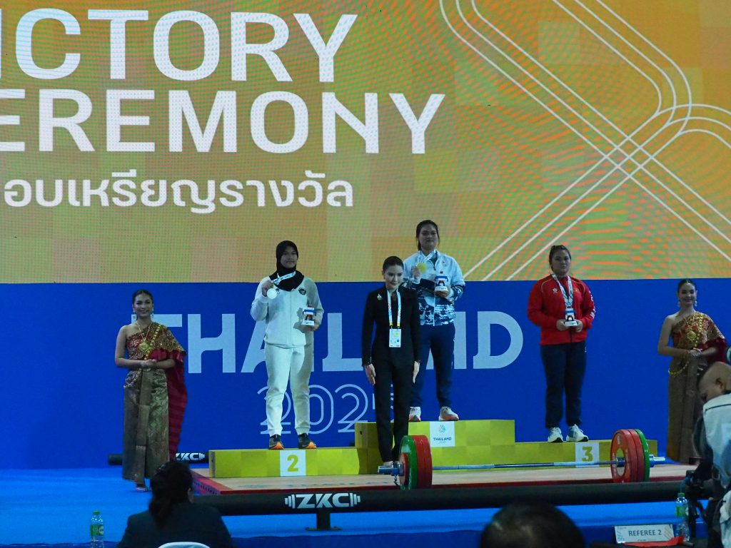 ส่วนเหรียญเงิน อัลยามอลิดา คาร์ติกา เปอร์ติวิ จากอินโดนีเซีย 206 กิโลกรัม (ท่าสแนทช์ 91 กิโลกรัม, ท่าคลีนแอนด์เจิร์ก 115 กิโลกรัม) และเหรียญทองแดง ธิ พวง เหงียน จากเวียดนาม 185 กิโลกรัม (ท่าสแนทช์ 90 กิโลกรัม, ท่าคลีนแอนด์เจิร์ก 95 กิโลกรัม)