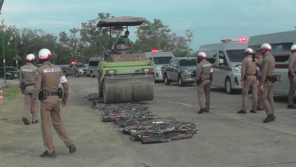 อนึ่งได้มีการทำรายท่อไอเสียรถจักรยานยนต์ ที่ทางศูนย์จราจรสถานีตำรวจภูธรอำเภอเมืองกระบี่ ตรวจยึดได้จากเด็กแว้น จำนวน 150 อันมาทำรายด้วย