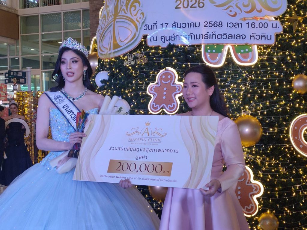นอกจากนี้ พญ.อรพิน กิตติพิทยา ในฐานะผู้บริหารคลินิกเสริมความงามชั้นนำของเมืองหัวหิน ยังได้มอบบัตรเครดิตมูลค่า 200,000 บาท ให้แก่ “นางสาวไทยประจวบคีรีขันธ์ ประจำปี 2569” เพื่อเป็นขวัญและกำลังใจในการปฏิบัติหน้าที่ตัวแทนจังหวัด และสนับสนุนการทำกิจกรรมเพื่อสังคมตลอดวาระการดำรงตำแหน่ง