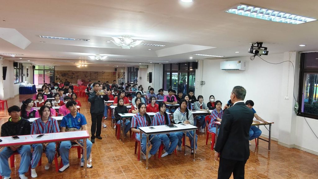 วันที่ 18 ธันวาคม 2568 เวลา 09.30 น. ณ หอประชุมโรงเรียนปากคาดพิทยาคม อำเภอปากคาด จังหวัดบึงกาฬ สำนักงานตำรวจแห่งชาติ โดยกองบัญชาการตำรวจสันติบาล นำโดย พ.ต.ท.พิพัฒน์ เจริญเดชธนกิจ สารวัตรหัวหน้าหน่วยตำรวจสันติบาลบึงกาฬ พร้อมเจ้าหน้าที่ตำรวจในสังกัด ได้ร่วมกันจัดกิจกรรมอบรม “โครงการสร้างจิตสำนึกความจงรักภักดีต่อสถาบันพระมหากษัตริย์ และปลูกฝังความรักชาติ รุ่นที่ 1/2569” โดยมีนักเรียนชั้นมัธยมศึกษาตอนปลายจำนวน 100 คน เข้าร่วมอบรมอย่างพร้อมเพรียง