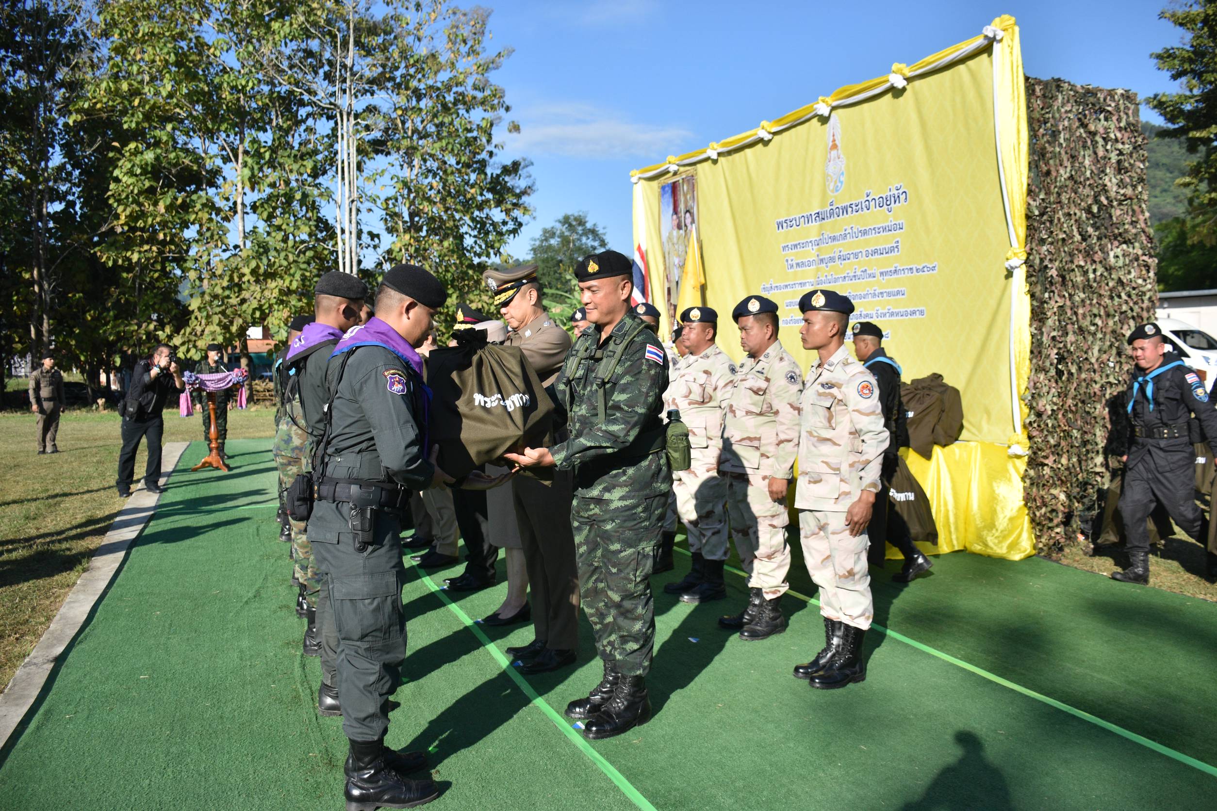 พระบาทสมเด็จพระเจ้าอยู่หัว ทรงพระกรุณาโปรดเกล้าฯให้ พลเอกไพบูลย์ คุ้มฉายา องคมนตรี เชิญถุงพระราชทาน เนื่องในโอกาสปีใหม่ มอบแก่เจ้าหน้าที่ ที่ปฏิบัติงานภารกิจ กองทัพภาคที่ 2 กกล.สุรศักดิ์มนตรี ณ ฐานปฏิบัติการกองร้อย ฉก.ทพ 2110 ฉก.ทพ.21 อำเภอสังคม จังหวัดหนองคาย