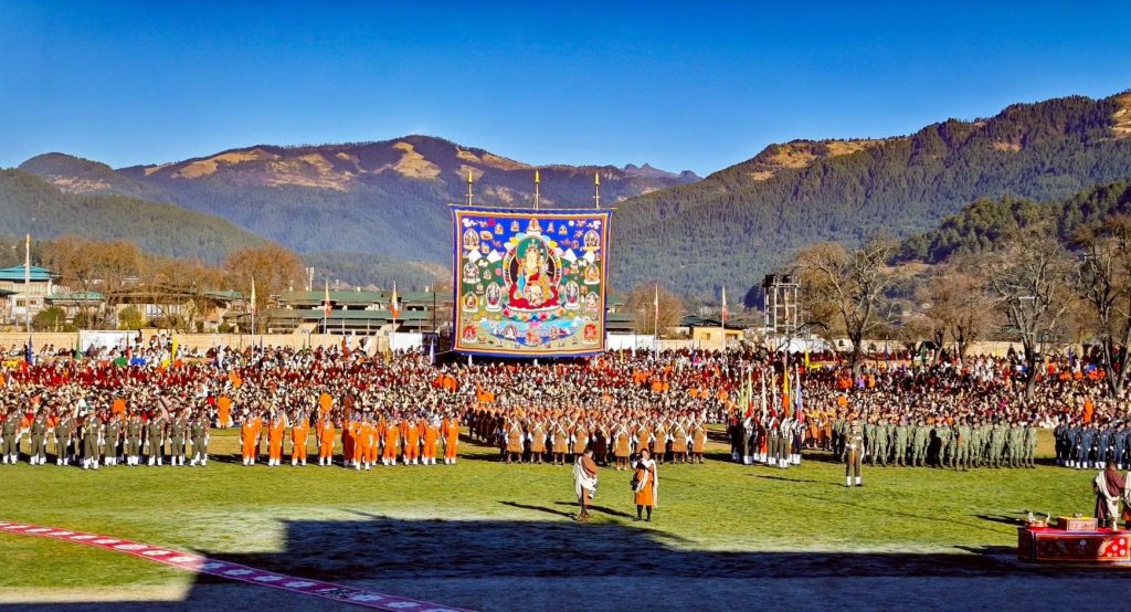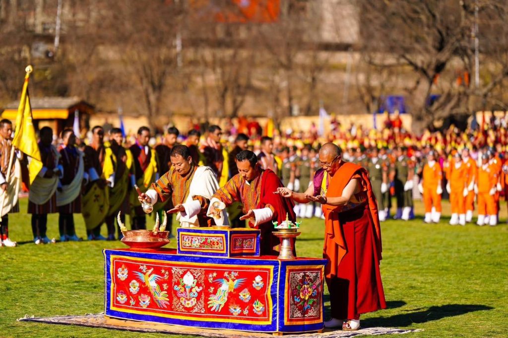 สำหรับพิธีวันชาติภูฏาน นับเป็นพิธีสำคัญระดับชาติ มีลำดับพิธีการอย่างเคร่งครัด เริ่มตั้งแต่ประชาชนและแขกผู้มีเกียรติเข้าประจำที่นั่ง ก่อนการเสด็จมาถึงของพระบรมวงศานุวงศ์ และการเสด็จพระราชดำเนินของพระบาทสมเด็จพระราชาธิบดีองค์ที่ 4 แห่งภูฏาน พร้อมสมเด็จพระราชินีทั้งสองพระองค์