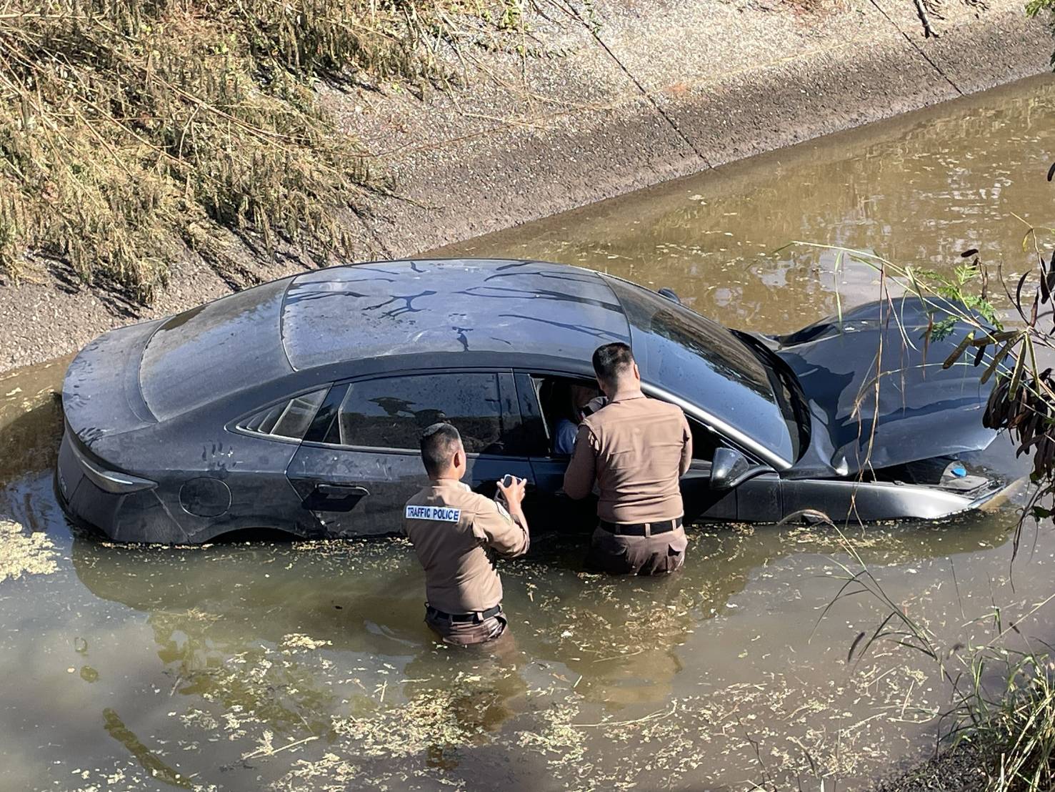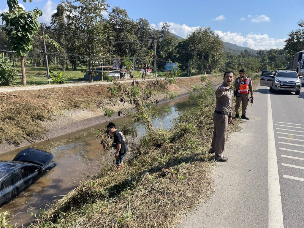 ตร.ดอยสะเก็ดรุดช่วยคนขับเก๋งเสียหลักตกคลองชลประทาน รอดตายหวุดหวิด