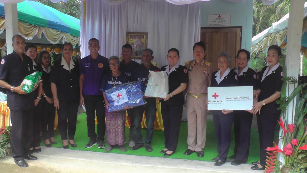 ให้กับครอบครัวนายพา แก้วบางพระ บ้านเลขที่ 77 หมู่ที่ 2 บ้านคลองทรายขาว ตำบลคลองยา อำเภออ่าวลึก จังหวัดกระบี่ โดยเหล่ากาชาดจังหวัดกระบี่ให้งบ 200,000 บาท ในการก่อสร้างบ้าน และทางอำเภออ่าวลึกร่วมถึงผู้นำชุมชนและท้องถิ่นสมทบอีก 100,000 บาท รวมเป็นเงิน 300,000 บาท เป็นบ้านบ้านกว้าง 5 เมตร ยาว 10 เมตร บ้านคอนกรีตเสริมเหล็ก โครงหลังคาไม้ มุงกระเบื้อง พื้นปูกระเบื้อง มี 1 ห้องนอน 1 ห้องนั่งเล่น 1 ห้องครัว 1 ห้องน้ำ ในพื้นที่ที่ได้รับบริจาค สำหรับครอบครัวนายพา มีด้วยกัน 2 ชีวิตคือสามีและภรรยา ซึ่งมีอาชีพรับจ้างทั่วไปมีรายได้ไม่แน่นอน ทั้งไม่มีบ้านอาศัยอย่างถาวรต้องอาศัยขนำในการหลับนอน