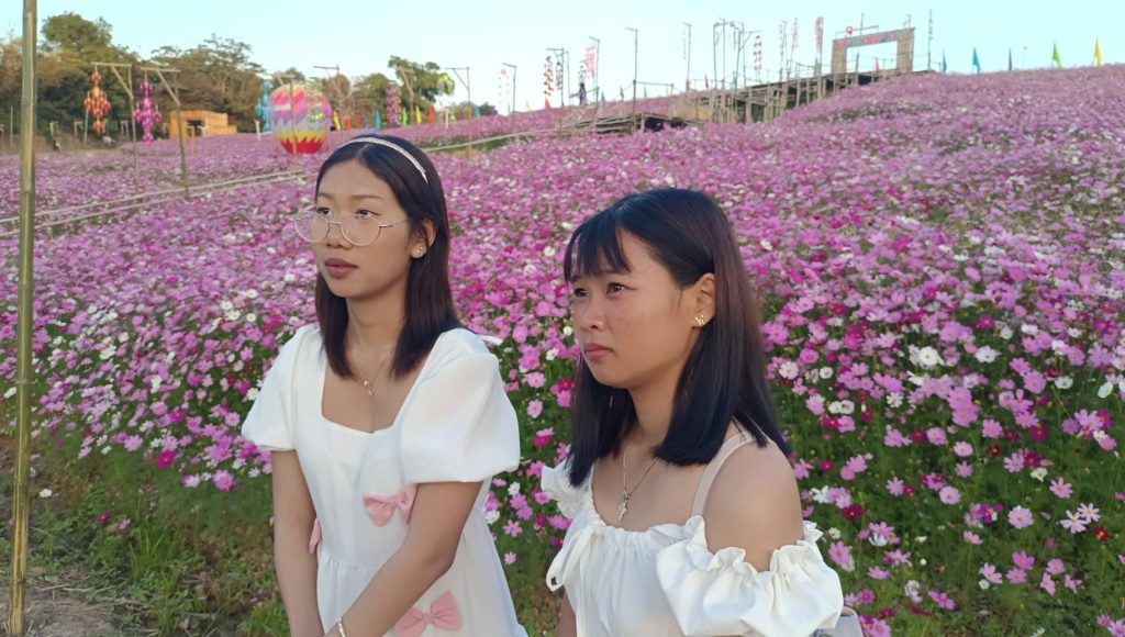ด้าน น.ส.จิสมิน ถิ่นคุ้ม นทท.สาวชาวขอนแก่น ได้ขับจยย.มากับเพื่อนสาว วิ่งข้ามจังหวัดจากจ.ขอนแก่นกว่า200 กม.เพื่อมาเที่ยวทุ่งคอสมอสหลังทราบข่าวจากทางโซเชียล จึงดิ่งรถมาเพื่อชมความงาม ที่ทุ่งคอสมอส แห่งนี้ รู้สึกประทับใจสุดๆโดยเฉพาะช่วง4โมงเย็นพระอาทิตย์ ตกดินแสงแดดส่องกระทบดอกคอสมอสอย่างสวยงาม จึงอยากเชิญชวนใครที่ยังไม่เคยมาเที่ยว มาได้เลยค่ะไม่ผิดหวังแน่นอน และอยากฝากให้นักท่องเที่ยวมาเที่ยวชมกันเยอะๆโดยเฉพาะวันหยุดเสาร์-อาทิตย์มาเห็นแล้ว ดอกไม้สวยงานมากๆ เลยเห็นว่าทางอำเภอจะเปิดต้อนรับนักท่องเที่ยวตั้งแต่วันนี้ถึงปีใหม่ 2569 ด้วยค่ะ /////////////