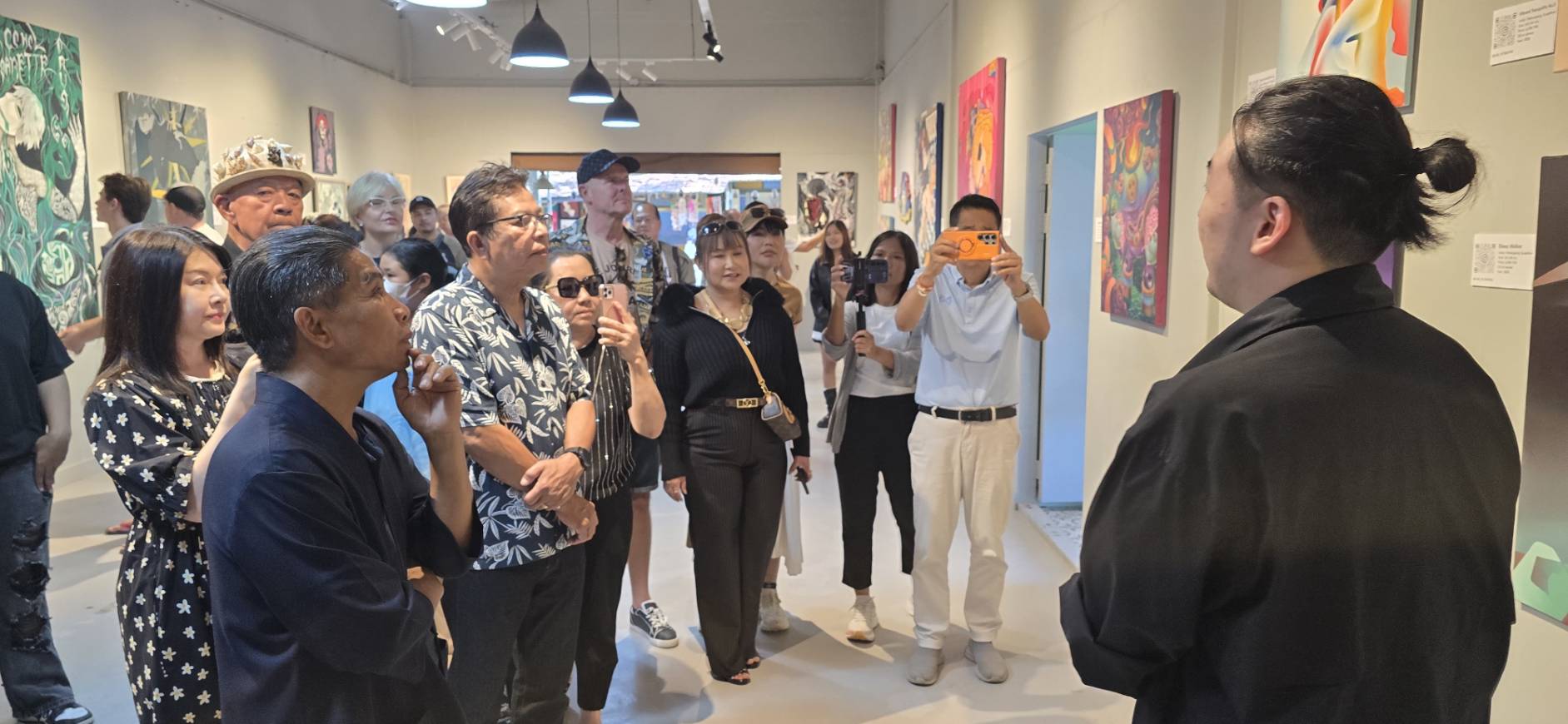โดยมี นายทวี เกษางาม ผู้อำนวยการบ้านศิลปินหัวหิน ให้การต้อนรับ พร้อมนำกลุ่มศิลปินรุ่นน้องจาก จุฬาลงกรณ์มหาวิทยาลัย นำผลงานศิลปะมาจัดแสดง ถ่ายทอดผ่านแนวคิดด้านจินตนาการ ความรู้สึกนึกคิด การสร้างมิติใหม่ทางศิลปะ สะท้อนมุมมองทั้งความเป็นจริงในปัจจุบันและอนาคตของคนรุ่นใหม่