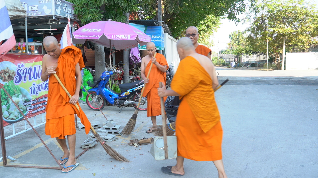 พระใหม่ศิลปินตลกร่วมทำความสะอาดวัดถวายเป็นพระราชกุศลฯ