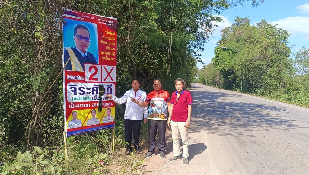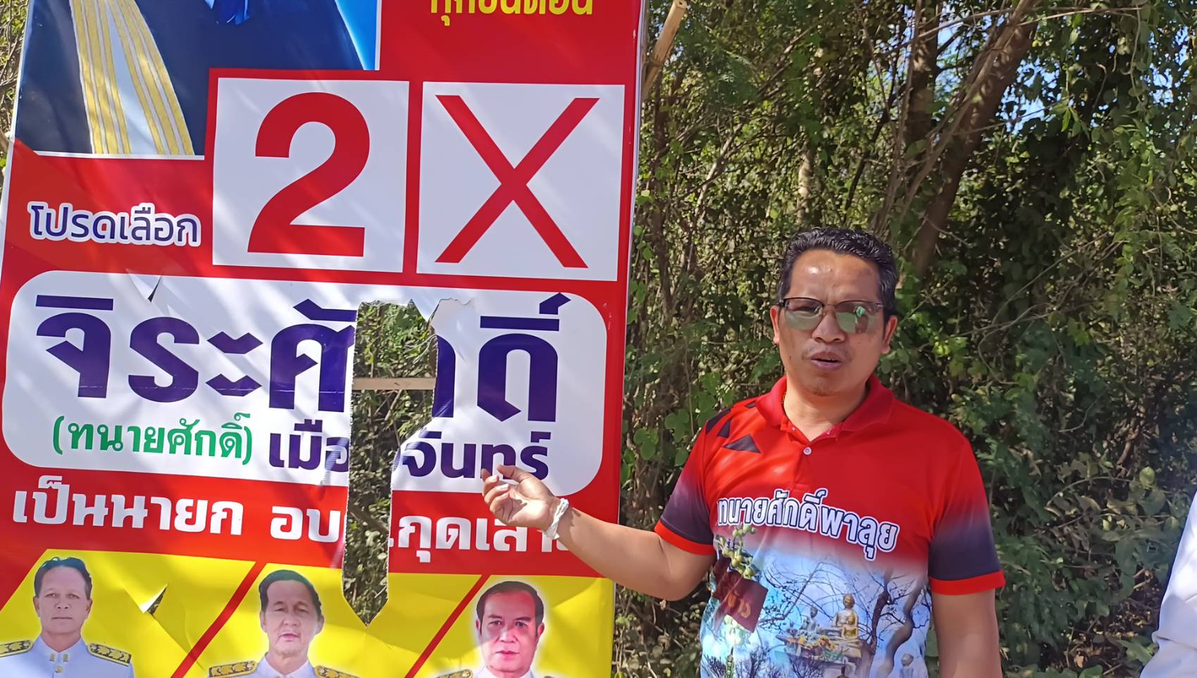 ชัยภูมิหาเสียงนายกอบต.เดือดพบมือบอนแอบชกมวยทำลายป้ายหาเสียงทนายดังเมืองชัยภูมิผู้สมัครนายก อบต.กุดเลาะพังเสียหาย