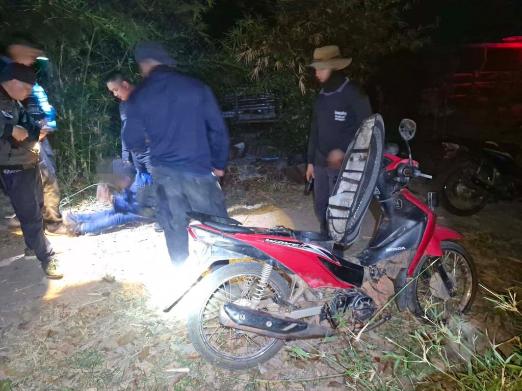 ต่อมาเจ้าหน้าที่เข้าทำการปิดล้อมตรวจค้น บริเวณกระท่อมสวนยางพารา(ไม่มีเลขที่) ตามที่ได้รับแจ้ง พบชายกำลังขับขี่รถจักรยานยนต์ เข้ามายังบริเวณกระท่อมสวนยางพารา ลักษณะท่าทางมีพิรุธ ชุดปฏิบัติการร่วม ฯ ที่เฝ้าตรวจและสังเกตการณ์อยู่ใกล้ๆ กระท่อมดังกล่าว จึงได้แสดงตัวให้สัญญาณหยุดรถเพื่อขอตรวจสอบ เมื่อชายดังกล่าวเห็นว่าเป็นเจ้าหน้าที่ จึงได้พยายามที่จะเร่งเครื่องหลบหนี แต่เจ้าหน้าที่ควบคุมตัวไว้ได้ ทราบชื่อ นายธิวาพัฒน์ อายุ 32 ปี