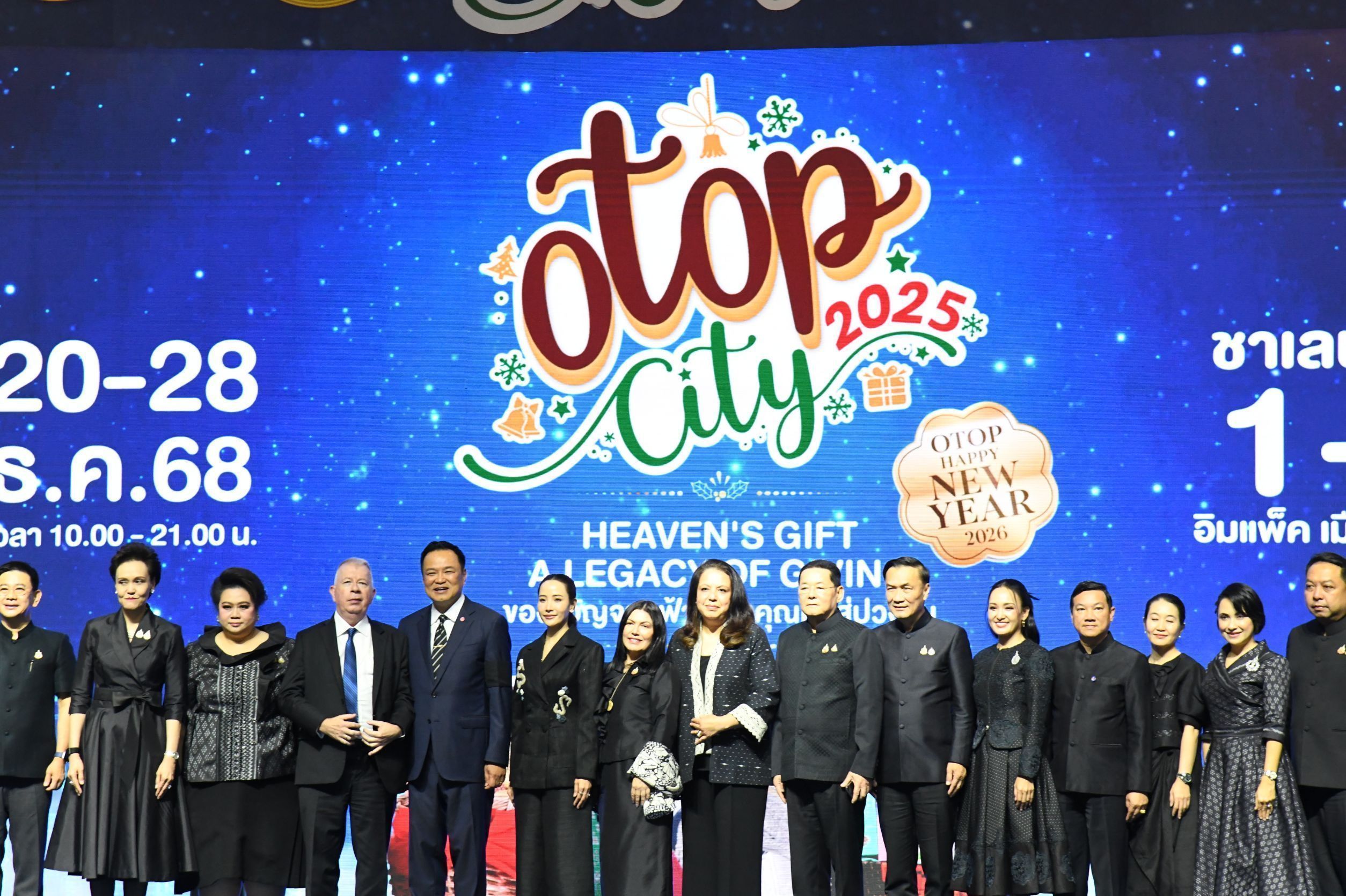 วันนี้ (22 ธันวาคม 2568) เวลา 17.00 น. ณ เวทีกลาง อาคารชาเลนเจอร์ 2 ศูนย์การแสดงสินค้าและการประชุม อิมแพ็ค เมืองทองธานี อำเภอปากเกร็ด จังหวัดนนทบุรี นายอนุทิน ชาญวีรกูล นายกรัฐมนตรีและรัฐมนตรีว่าการกระทรวงมหาดไทย เป็นประธานในพิธีเปิดงาน OTOP City 2025 โดยมีนางสาวศุภมาส อิศรภักดี รัฐมนตรีประจำสำนักนายกรัฐมนตรี นายนภินทร ศรีสรรพางค์ รัฐมนตรีประจำสำนักนายกรัฐมนตรี นางศุภจี สุธรรมพันธุ์ รัฐมนตรีว่าการกระทรวงพาณิชย์ นางสาวศศิธร กิตติธรกุล รัฐมนตรีช่วยว่าการกระทรวงมหาดไทย นายทรงศักดิ์ ทองศรี รัฐมนตรีช่วยว่าการกระทรวงมหาดไทย คณะทูตานุทูต คณะกรรมการอำนวยการหนึ่งตำบล หนึ่งผลิตภัณฑ์แห่งชาติ ผู้ว่าราชการจังหวัด หัวหน้าส่วนราชการ ผู้แทนภาคเอกชน และผู้ประกอบการ OTOP จากทั่วประเทศ เข้าร่วมพิธีเปิด พร้อมด้วยนายเชษฐา โมสิกรัตน์ ผู้ว่าราชการจังหวัดนนทบุรี