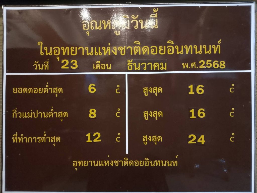 ครั้งที่ 15 วันที่ 23.12.2568 อุณหภูมิต่ำสุด 6 องศาเซลเซียส หน่วยพิทักษ์อุทยานแห่งชาติดอยอินทนนท์ อน.5 (ยอดดอย)(06.00 น.)