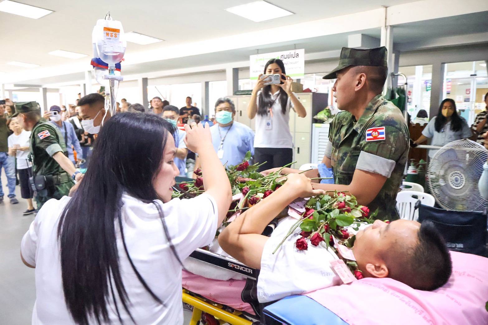 บรรยากาศในช่วงการส่งตัวเต็มไปด้วยความอบอุ่นและซาบซึ้งใจ ทุกภาคส่วนร่วมแสดงพลังแห่งความสามัคคี พร้อมกล่าวคำขอบคุณต่อความเสียสละอันยิ่งใหญ่ของทหารกล้า ผู้เป็นแนวหน้าของแผ่นดิน ย้ำชัดว่าการสูญเสียครั้งนี้จะไม่สูญเปล่า และคนไทยทั้งประเทศยังคงพร้อมส่งต่อกำลังใจ ให้การดูแล และยืนหยัดเคียงข้างผู้เสียสละเพื่อชาติอย่างมั่นคง จากการปฏิบัติหน้าที่ด้วยความกล้าหาญและยึดมั่นในหน้าที่ จ่าเอก เทอดพงษ์ ได้รับบาดเจ็บสาหัสจากเหตุการณ์เหยียบทุ่นระเบิด ส่งผลให้ข้อเท้าขาขวาขาด ท่ามกลางความห่วงใยของคณะแพทย์ พยาบาล เจ้าหน้าที่ และประชาชน ที่ร่วมกันส่งแรงใจ สนับสนุน และยืนเคียงข้างอย่างไม่ทอดทิ้ง