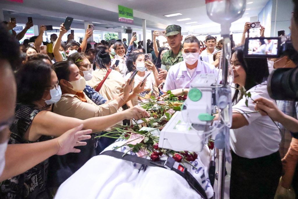 จ.จันทบุรี แพทย์ พยาบาลและประชาชนชาวจังหวัดจันทบุรี ร่วมส่งกำลังใจส่งทหารกล้า จ่าเอก เทอดพงษ์ เดินทางไปรักษาต่อโรงพยาบาลต้นสังกัด จังหวัดชลบุรีหลังอาการดีขึ้นปลอดภัย