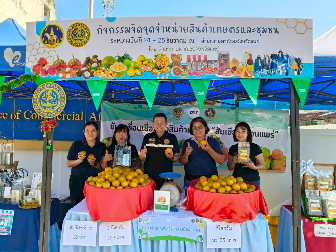 วันพุธที่ 24 ธันวาคม 2568 เวลา 09.00 น. สำนักงานพาณิชย์จังหวัดแพร่ จัดจุดจำหน่ายสินค้าเกษตรและสินค้า ชุมชนให้เกษตรกรและผู้ประกอบการและเชื่อมโยงกระจายส้มเขียว