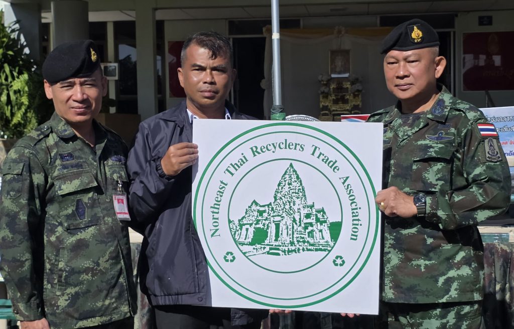 สุรินทร์-บ.ศักดิ์สิทธิ์อัลลอย มอบธงชาติไทยพร้อมเสา และม้านั่งเหล็กให้กับ ผบ.มทบ.25 เพื่อนำไปตั้งประกาศเขตอธิปไตยบนเนินที่ไทยยึดได้