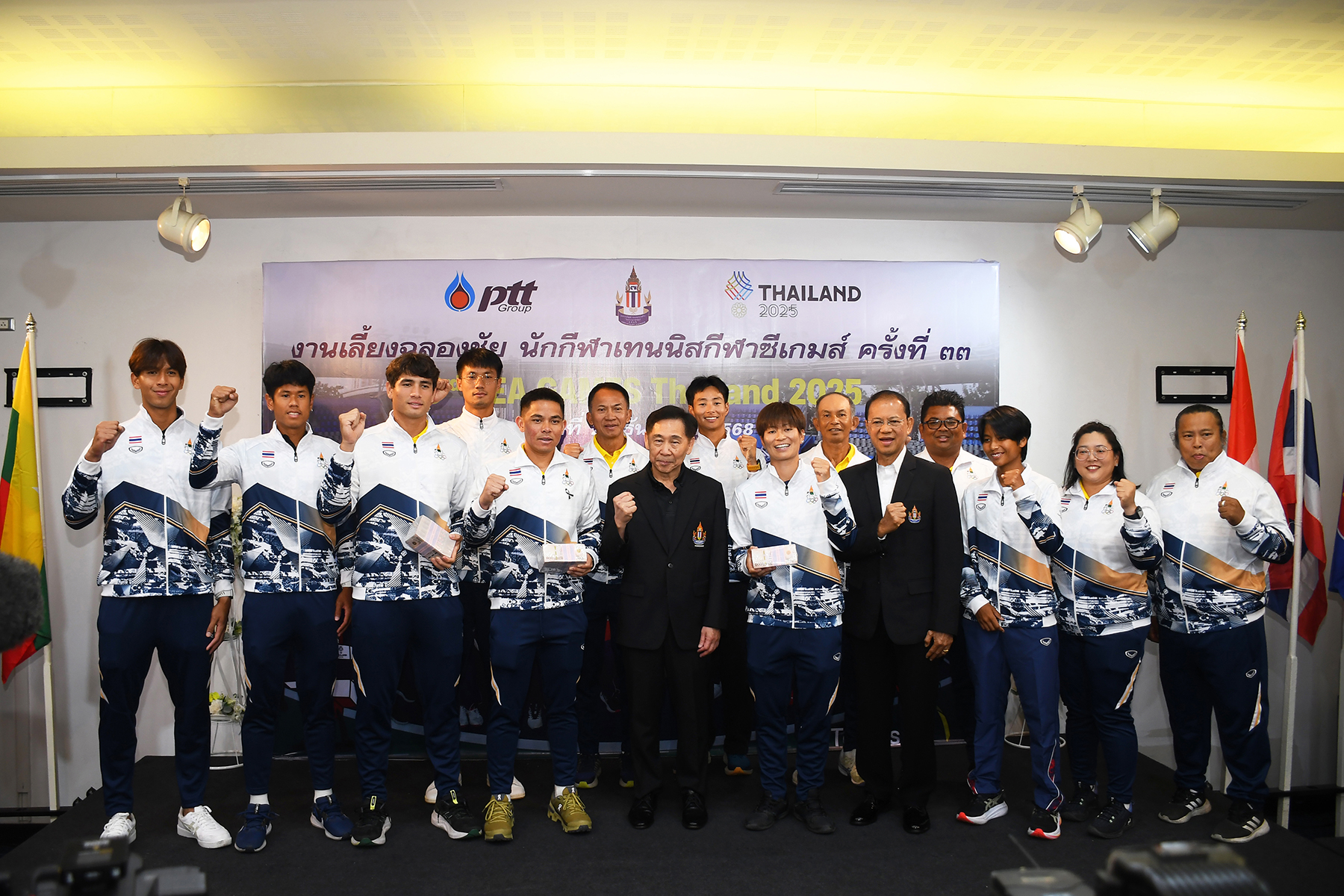 เมื่อวันที่ 24 ธ.ค. 2568 "บิ๊กสุชัย" นายสุชัย พรชัยศักดิ์อุดม นายกสมาคมกีฬาลอนเทนนิสแห่งประเทศไทย ในพระบรมราชูปถัมภ์ เป็นประธานงานเลี้ยงฉลองความสำเร็จของคณะนักกีฬาเทนนิสทีมชาติไทย ที่ทำผลงานได้ 3 เหรียญทอง 7 เหรียญเงิน และ 1 เหรียญทองแดง จากการแข่งขันกีฬาซีเกมส์ ครั้งที่ 33 ระหว่างวันที่ 10-19 ธ.ค. ที่ผ่านมา ณ ห้องประชุมชั้น 2 ศูนย์พัฒนากีฬาเทนนิสแห่งชาติ เมืองทองธานี