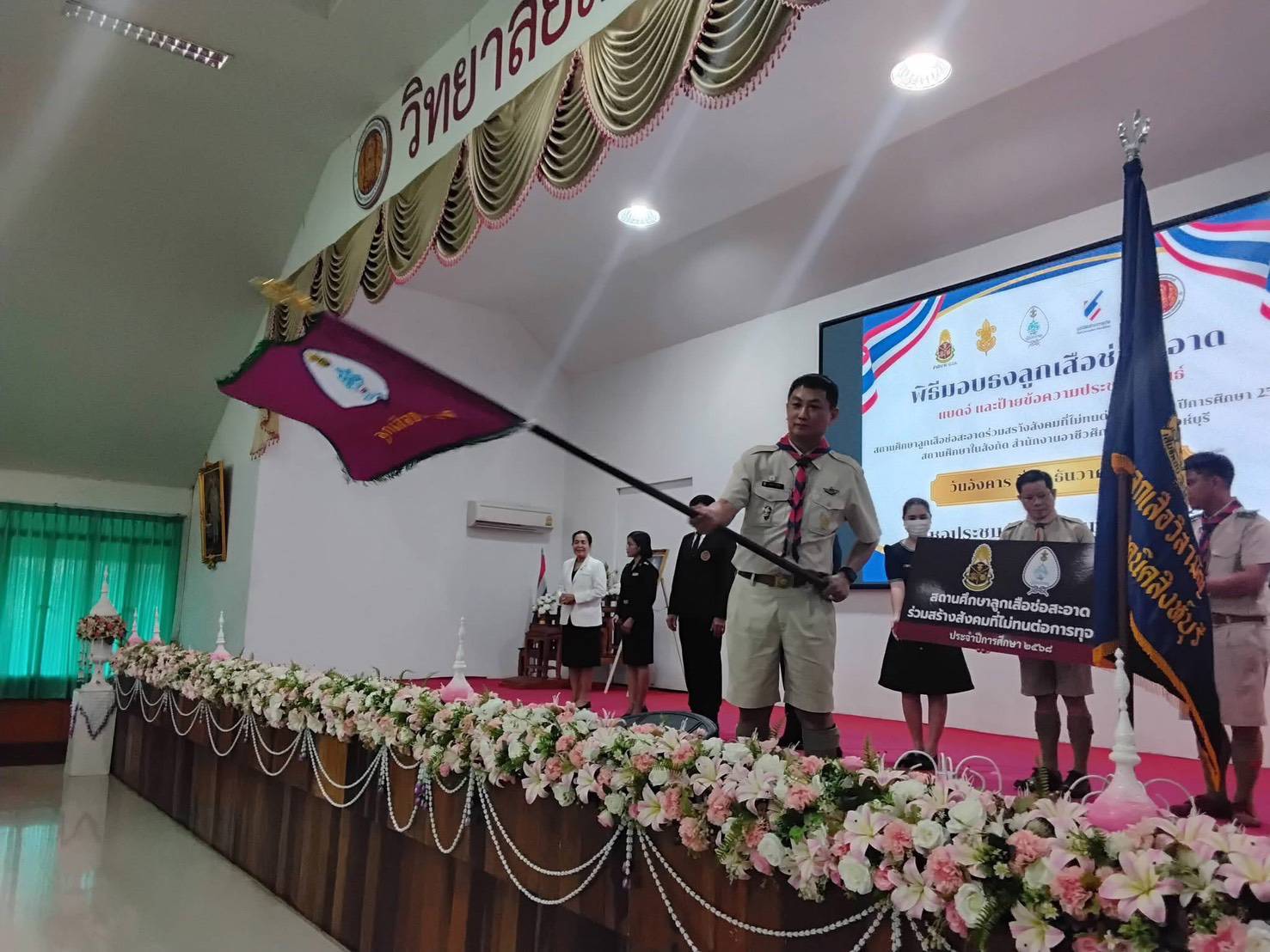 วิทยาลัยเทคนิคสิงห์บุรีจัดพิธีรับมอบธง แบดจ์ และป้ายประชาสัมพันธ์ “ลูกเสือช่อสะอาด” ปลูกฝังคุณธรรมต้านทุจริต