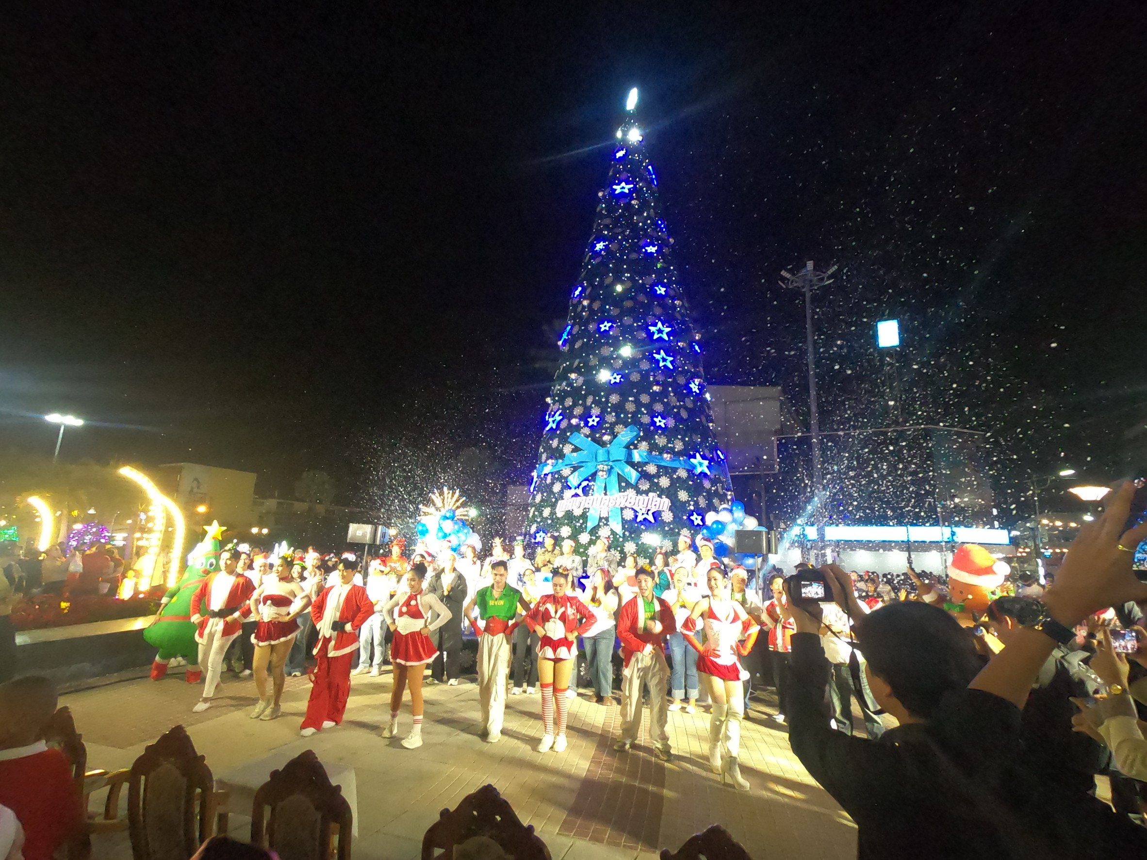 ชาว จ.พิษณุโลก ร่วมกันเปิด ไฟประดับต้นคริสต์มาส สูง 20 เมตร กลางเมือง ในงานเทศกาลอาหาร