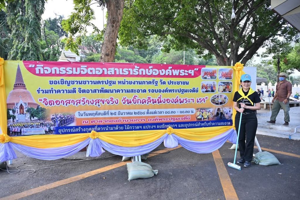 วันที่ 25 ธันวาคม 2568 นางสาวอโรชา นันทมนตรี ผู้ว่าราชการจังหวัดนครปฐม เป็นประธานเปิดกิจกรรมจิตอาสา “เรารักษ์องค์พระปฐมเจดีย์” ณ องค์พระปฐมเจดีย์ อำเภอเมืองนครปฐม จังหวัดนครปฐม โดยมี พระศรีวิสุทธิวงศ์ รองเจ้าคณะจังหวัดนครปฐม ผู้ช่วยเจ้าอาวาส วัดพระปฐมเจดีย์ ราชวรมหาวิหาร