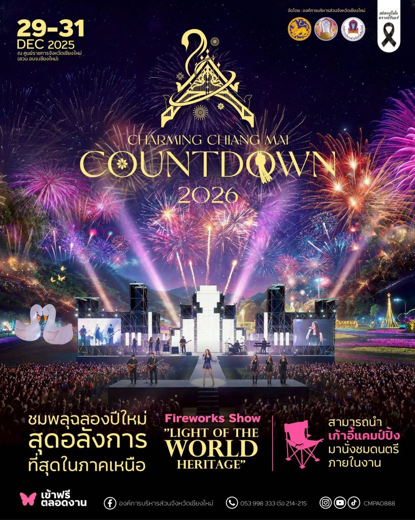 อบจ.เชียงใหม่ เตรียมจัดงานเคานต์ดาวน์สุดยิ่งใหญ่ ต้อนรับนักท่องเที่ยวช่วงไฮซีซั่น ส่งท้ายปีเก่าต้อนรับปีใหม่ 2569