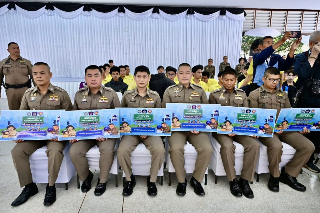 ตำรวจภูธรจังหวัดนครปฐม ขานรับนโยบายสำนักงานตำรวจแห่งชาติ เปิดกิจกรม Kick Off “นครปฐม 1 หมวก 1น้ำใจ พิทักษ์ภัยทางถนน” มุ่งเน้นการมีส่วนร่วมจากทุกภาคส่วน เพื่อลดความสูญเสียจากอุบัติเหตุทางถนน โดยเฉพาะการบาดเจ็บรุนแรงที่ศีรษะจากการไม่สวมหมวกนิรภัย และมีกลไกการติดตามการใช้หมวกนิรภัยโดยใช้ระบบ QR code