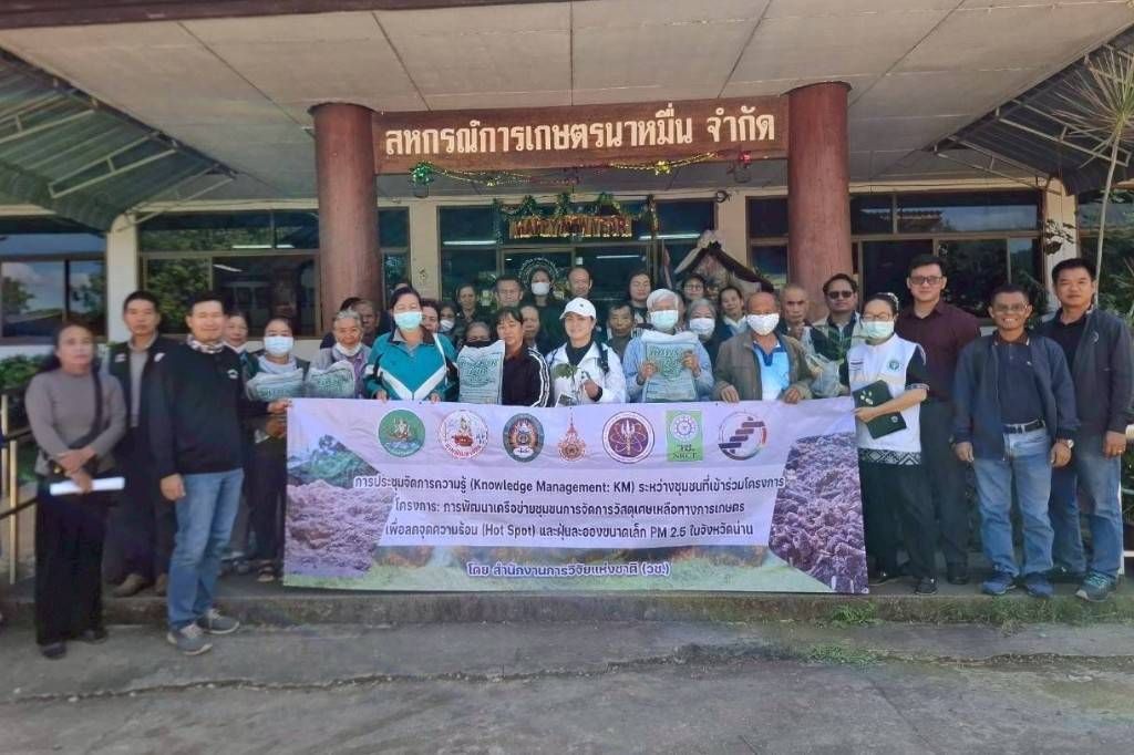 สำนักงานสหกรณ์จังหวัดน่าน ร่วมกับสำนักงานการวิจัยแห่งชาติ (วช.) และภาคีเครือข่ายระดับท้องถิ่น 8 หน่วยงาน จัดประชุมถอดบทเรียน “ตัวอย่างที่ดี (Best Practice)” การจัดการเศษวัสดุเหลือใช้ทางการเกษตรด้านปศุสัตว์ เพื่อลดจุดความร้อน (Hot Spot) และฝุ่นละอองขนาดเล็ก PM2.5 ในพื้นที่จังหวัดน่าน