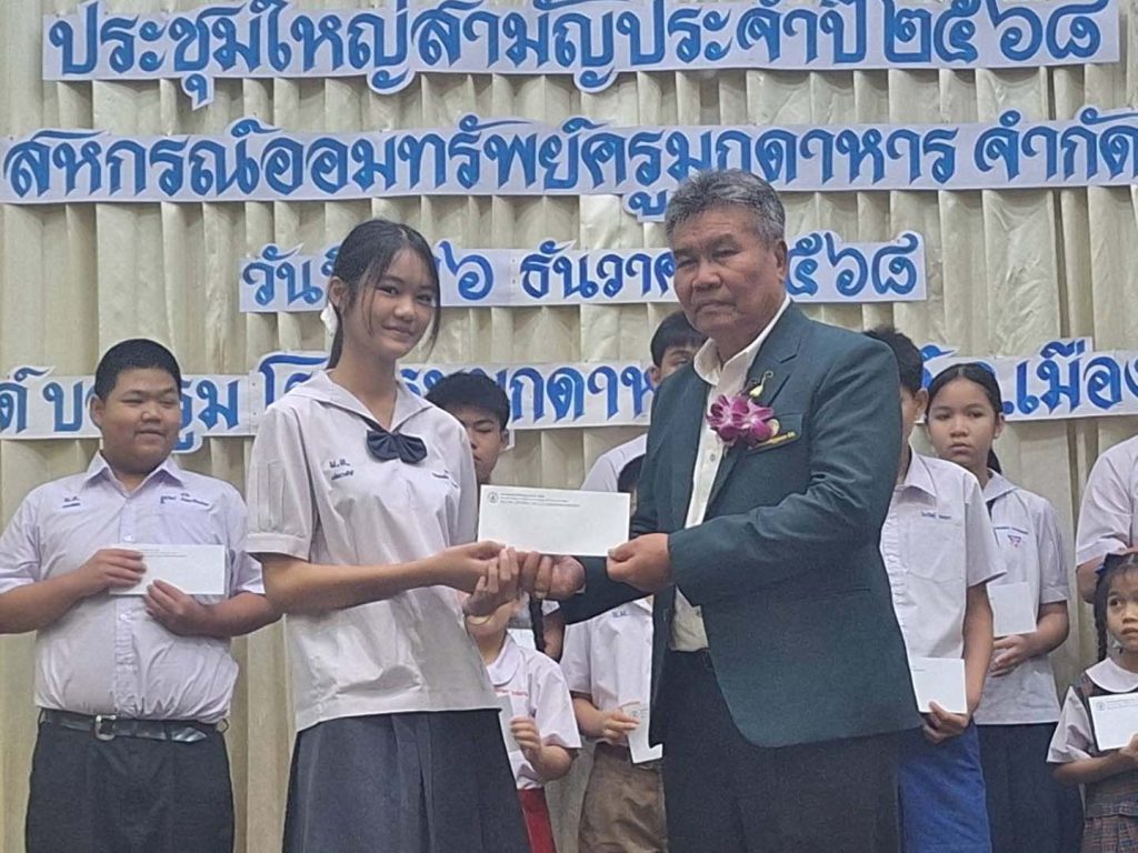 มุกดาหาร – สหกรณ์ออมทรัพย์ครูมุกดาหาร จำกัด จัดประชุมใหญ่สามัญปี 2568 เดินหน้าเพื่อมวลสมาชิกให้มีคุณภาพชีวิตที่ดีและมีความสุข พร้อมมอบทุนการศึกษาจำนวน 200 ทุน และจับสลากของขวัญปีใหม่