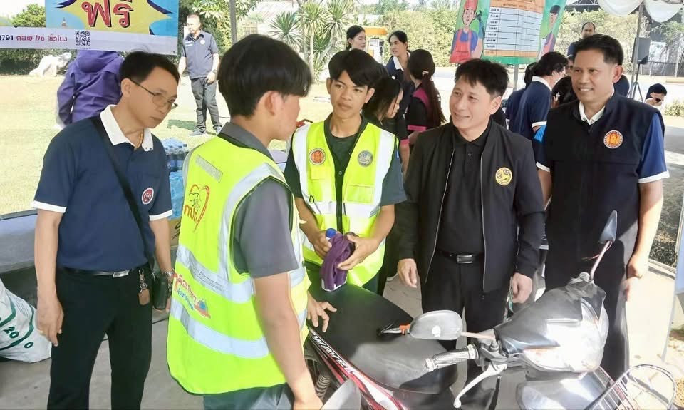 นายนรวีร์ ขันธหิรัญ นายอำเภอนครชัยศรี เป็นประธานพิธีเปิด โครงการ “อาชีวะ – ขนส่ง อาสาช่วยประชาชน เทศกาลปีใหม่ 2569 โดยมี นายจรูญ อินไข ผอ.วิทยาลัยการอาชีพบางแก้วฟ้า (หลวงพ่อเปิ่นอุปถัมภ์) /คณะผู้บริหาร/คณะครู/ผู้นำท้องที่/ผู้นำท้องถิ่น ปลัดอำเภอ และนักศึกษา ฯลฯ เข้าร่วมพิธีเปิดดังกล่าว ดำเนินการโดยวิทยาลัยการอาชีวะบางแก้ว (หลวงพ่อเปิ่นอุปถัมภ์) ร่วมกับกรมการขนส่งทางบก