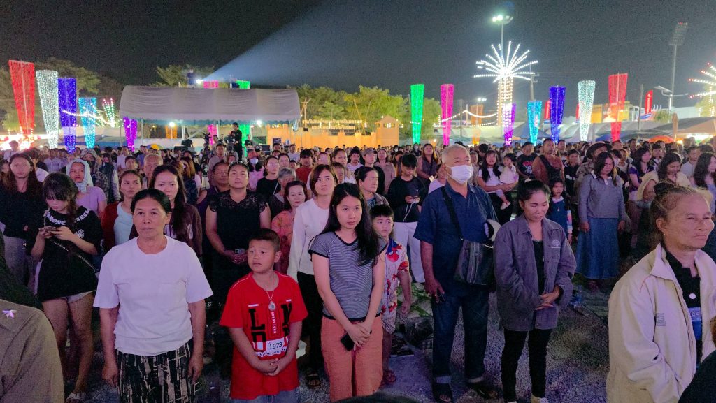 โดยได้ร่วมกันยืนสงบนิ่งเป็นเวลา 93 วินาที แสดงความอาลัยแด่สมเด็จพระนางเจ้าสิริกิติ์ พระบรมราชินีนาถ พระบรมราชชนนีพันปีหลวง ก่อนจะนับถอยเข้าสู่ศักราชใหม่อย่างเป็นทางการ และร่วมเพลงชาติไทยสดุดีทหารกล้า ผู้เสียสละพลีชีพเพื่อแผ่นดิน รวมทั้งเพลงอวยพรปีใหม่ โดยมีนายเรืองฤทธิ์ ประกอบธรรม ปลัดจังหวัดระยอง หัวหน้าส่วนราชการจังหวัด ร่วมอวยพร ก่อนจะมีการจุดพลุ จำนวน 109 นัด เฉลิมฉลองเนื่องขึ้นสู่ศักราชใหม่อย่างเป็นทางการ ท่ามกลางเสียงไชโยโห่ด้วยความยินดีของพี่น้องประชาชนชาวระยองดังกึกก้องทั่วบริเวณงานวันสมเด็จพระเจ้าตากสินมหาราช และงานกาชาดจังหวัดระยอง ปี 2568