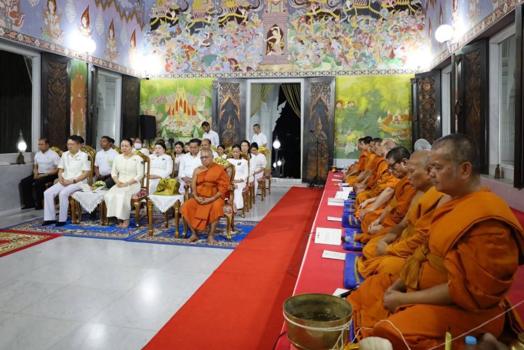 เวลา 00.09 น.ประธานสงฆ์ประพรมน้ำพระพุทธมนต์แก่ผู้เข้าร่วมพิธีเพื่อความเป็นสิริมงคล เนื่องในโอกาสวันขึ้นปีใหม่พุทธศักราช 2569