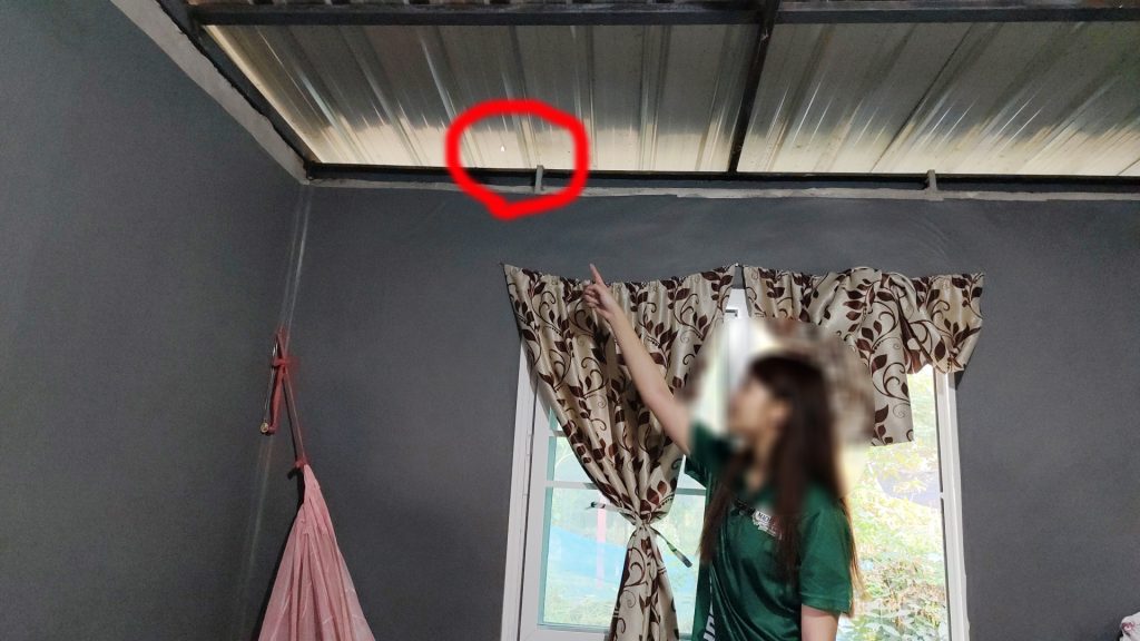 น.ส.เอ และน.ส.บี สองพี่น้อง เจ้าของห้องได้พาผู้สื่อข่าวเข้าไปดูที่ห้องนอนจุดเกิดเหตุพบที่หลังคาเมทัลชีท มีรูกระสุนทะลุ 1 รู ที่ผนังข้างที่นอนมีรอยถูกกระสุน บนที่นอนามีรอยถูกกระสุนถาก