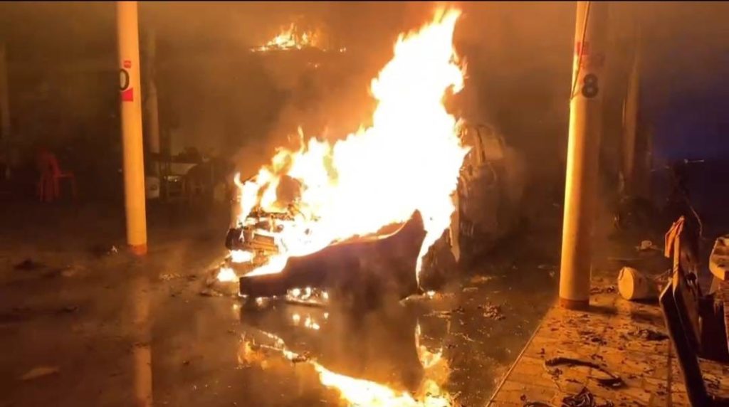 ที่เกิดเหตุ พบแสงเพลิงลุกไหม้รถยนต์ และลุกลามตัวโรงจอดรถ และห้องเก็บวัสดุอุปกรณ์การเกษตร ทำสวนกล้วยไม้ อย่างรุนแรง เจ้าหน้าที่ดับเพลิงช่วยกันระดมฉีดน้ำควบคุมเพลิงและ ป้องกันไม่ให้ลุกลาม เข้าไปติดบ้านหลังใหญ่ ที่อยู่ใกล้กัน โดยใช้เวลาในการควบคุมเพลิงประมาณ 45 นาที สามารถควบคุมเพลิงได้ เบื้องต้นพบว่ารถยนต์ไฟฟ้ายี่ห้อดัง ถูกฟไหม้วอด โรงจอดรถ วัสดุอุปกรณ์การเกษตร ทำสวนกล้วยไม้ ถูกไฟไหม้เสียหายทั้งหมด