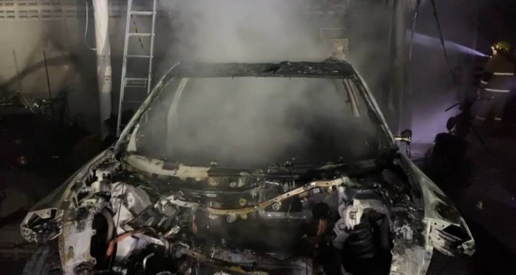 สอบถามนายพงษ์ปรีชา จงจิตรพิพัฒน์อายุ 67 ปี เจ้าของบ้านที่เกิดเหตุ ได้เล่าให้ฟังว่าตนเองอยู่กับครอบครัวทั้งหมด 5 คน ขณะที่เกิดเหตุนั้น ทุกคนไม่ได้อยู่ในบ้าน ออกไปต่างจังหวัด มีเพียงตนอยู่ลำพัง ในบ้านหลังที่เกิดเหตุ เมื่อเวลาประมาณ 4 ทุ่มกว่า ตนได้เสียบสายชาร์จรถยนต์ไฟฟ้าไว้ที่โรงรถ และได้ขึ้นบ้านไปนอนบนบ้าน ประมาณเที่ยงคืนกว่า ได้มีพี่สาวอยู่บ้านใกล้กันมาเรียกว่ามีกลุ่มควันไฟเข้าไปในบ้าน ตนจึงรีบลงมาดูในโรงรถ จึงพบว่ารถยนต์ไฟฟ้ากำลังถูกไฟลุกไหม้อย่างรุนแรง จึงรีบโทรศัพท์แจ้งตำรวจเพื่อขอความช่วยเหลือ ส่วนรถยนต์คันที่เสียหาย เป็นรถยนต์ไฟฟ้ายี่ห้อดังยี่ห้อหนึ่ง ตนได้ซื้อมาใหม่ป้ายแดงในราคา 1,4 00,000 บาท น่าแปลกใจมาก รถยนต์ซื้อมาใหม่ๆเมื่อวานก่อนนี้เอง ทำไมถึงไฟลุกไหม้ได้