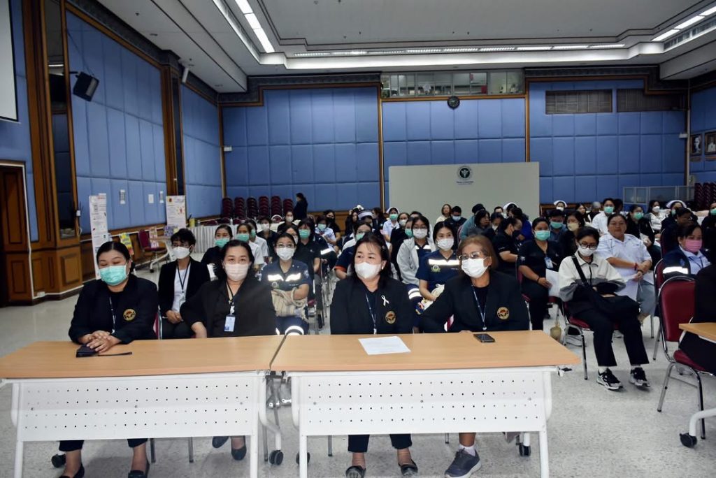 นายแพทย์สุรชัย โชคครรชิตไชย ผู้อำนวยการโรงพยาบาลนครปฐม มอบหมายให้ แพทย์หญิงบุญเพ็ญ จงเสรีจิตต์ รองผู้อำนวยการด้านตรวจอบภายใน เป็นประธานเปิดโครงการฝึกอบอรมการปฐมพยาบาลและการช่วยชีวิตขั้นพื้นฐาน (BLS) ภายใต้กิจกรรม “รวมพลังแห่งความดี” เพื่อถวายความอาลัยและน้อมรำลึกในพระมหากรุณาธิคุณ สมเด็จพระนางเจ้าสิริกิติ์ พระบรมราชินีนาถ พระบรมราชชนนี้พันปีหลวง โดยมี คุณสุรักขณา คงคาเพชร รองหัวหน้าพยาบาลด้านยุทธศาสตร์และสารสนเทศ กล่าวรายงาน วัตถุประสงค์ เพื่อเป็นแนวทางปฏิบัติในการช่วยฟื้นคืนชีพ ที่มีประสิทธิภาพและประสิทธิผล สำหรับบุคลากรของโรงพยาบาลนครปฐมให้ สามารถเลือกใช้อุปกรณ์ช่วยชีวิตได้เหมาะสมกับผู้รับบริการ เพื่อให้มีความรู้และทักษะในการปฏิบัติการช่วยชีวิตขั้นพื้นฐาน (BLS) และการใช้เครื่องกระตุกหัวใจไฟฟ้าอัตโนมัติ (AED) ทั้งในและนอกโรงพยาบาล สมารถนำไปใช้ได้ ณ ห้องประชุมจตุภัทร ชั้น 4 อาคารผู้ป่วยนอกและอำนวยการ โรงพยาบาลนครปฐม